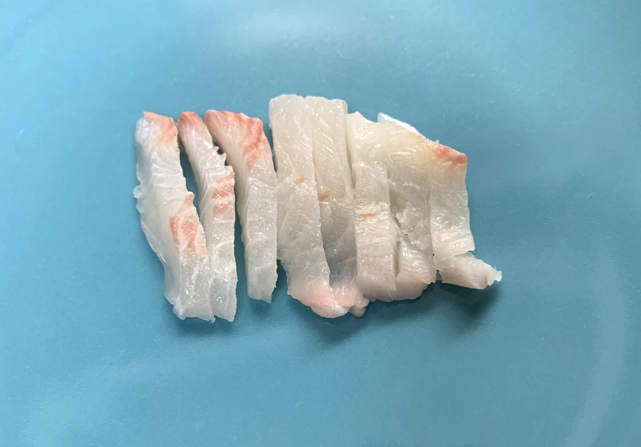 白く艶があって、とても綺麗な身をしていますね。そして意外にも脂のノリがすごいです!!