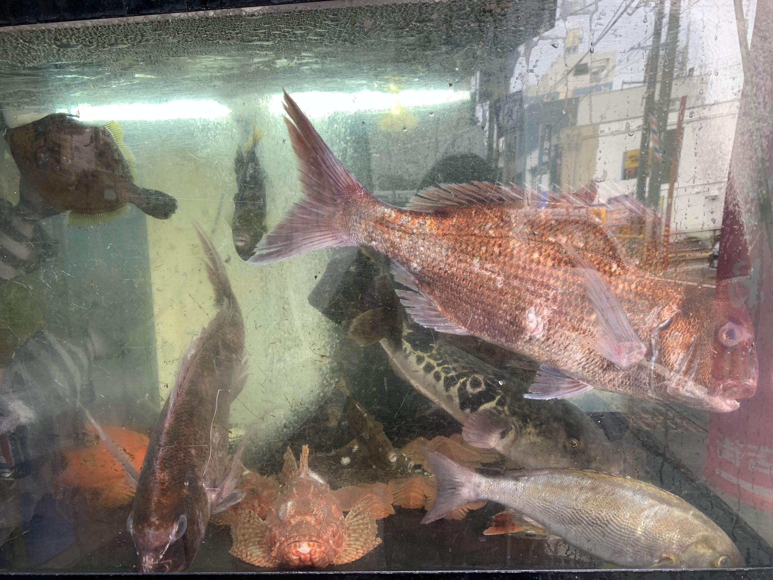 「タカノハダイギャンブルしたいなー、この時期のタカノハダイ手に入らないかなー」と思いながら行きつけの魚屋「海鮮市場マルモト」(神奈川県伊勢原市伊勢原1-3-37)の水槽を眺めていると