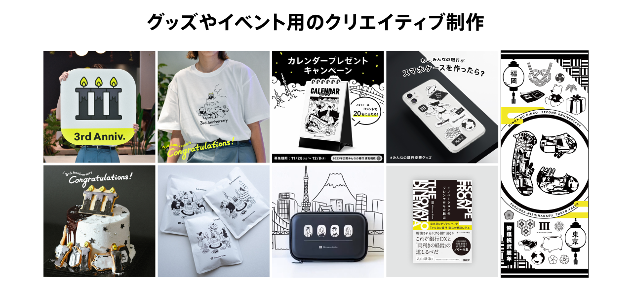 みんなの銀行のサービスに関する制作物に限らず、社内コミュニケーションを活性化するためのモノづくりも行っています。