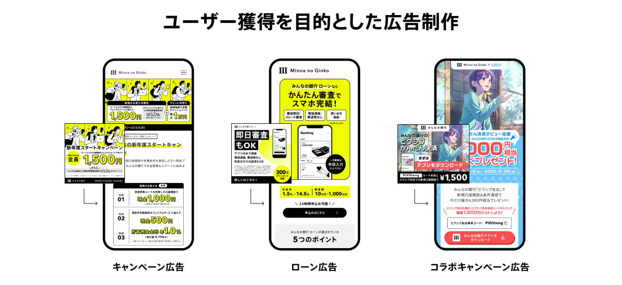 いかに数字が取れて、いかに「みんなの銀行」らしい広告を作れるか、トライアンドエラーを重ねていきます。