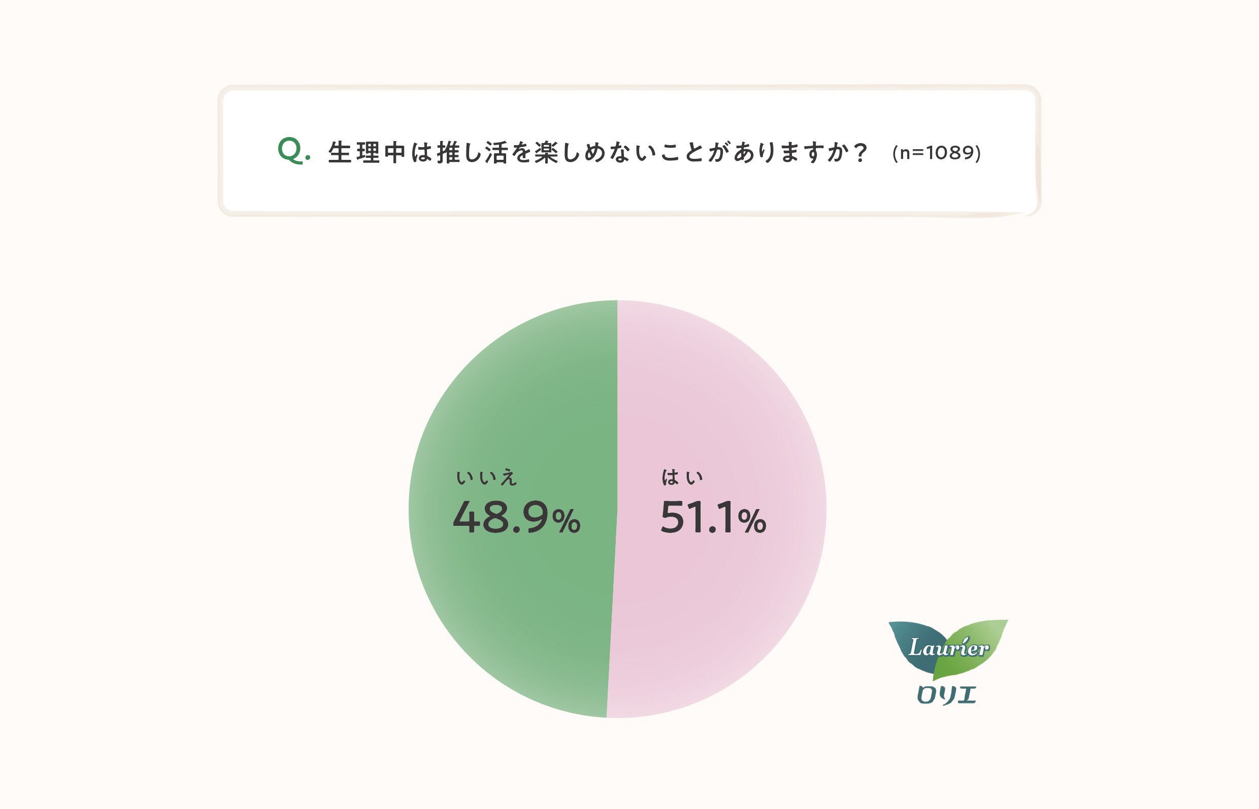 さらに、生理中は推し活を楽しめないことがあるかを尋ねる設問においては51.1%が「はい」と回答。