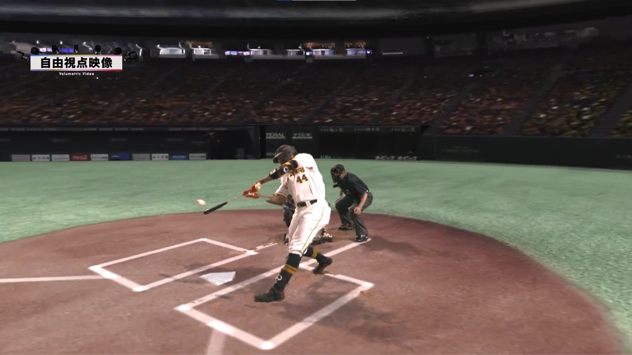 キヤノン株式会社が開発したボリュメトリックビデオシステムは、バッティング、走塁、守備連携など、プレイ中の様々なシーンのリプレイ映像を、360度のカメラワークで制作することを可能にしています。
