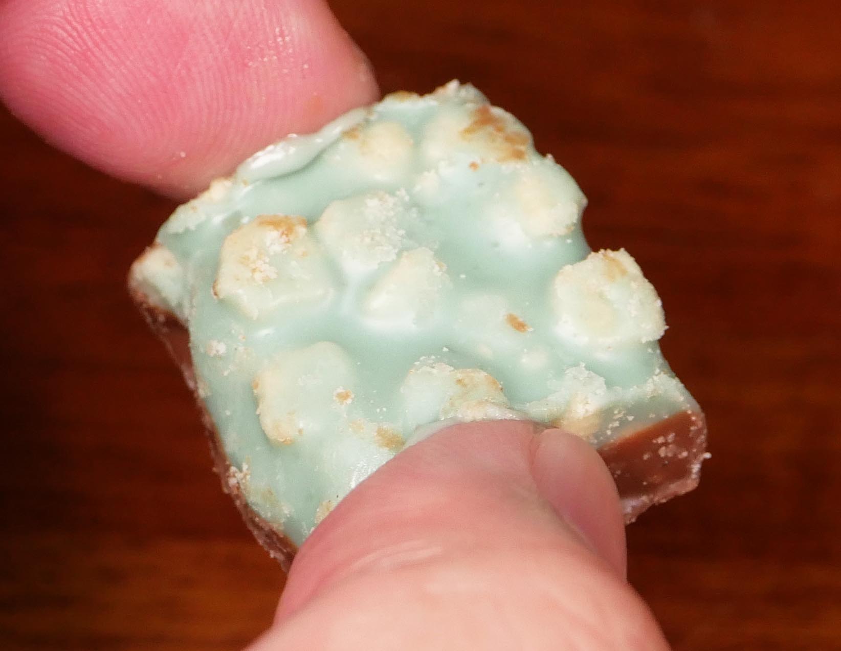 手に持つと、瞬時にチョコがとけます。なので、つまんだらすぐに食べると良いでしょう。つまんだだけでとけるレベルなので、食べると高速でとけます。そのとけっぷりが本当にステキ。ギュンギュンとけるので、ミントテイストと薫りと甘味が一気に味覚を包むのです。しかも濃いミントと甘味が。