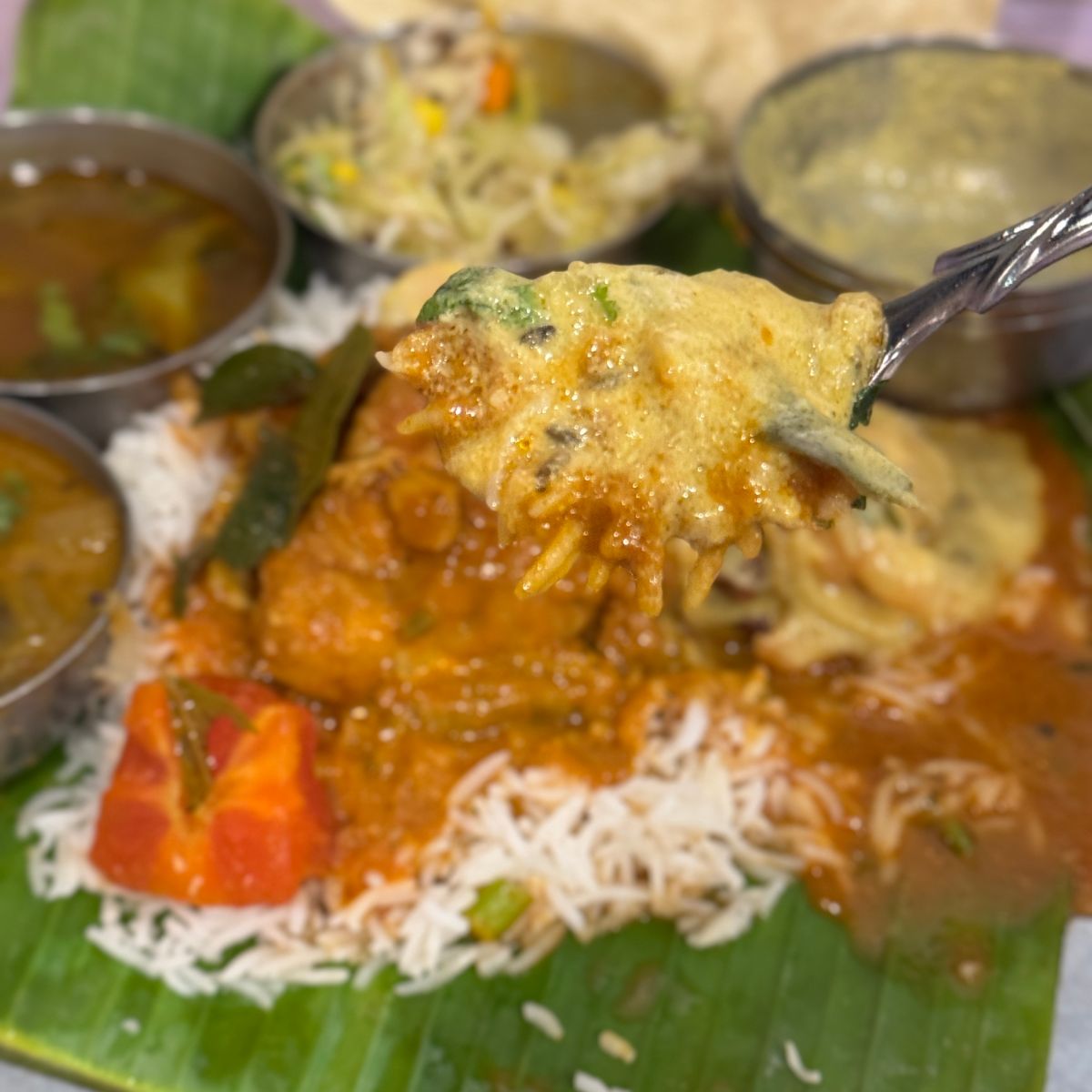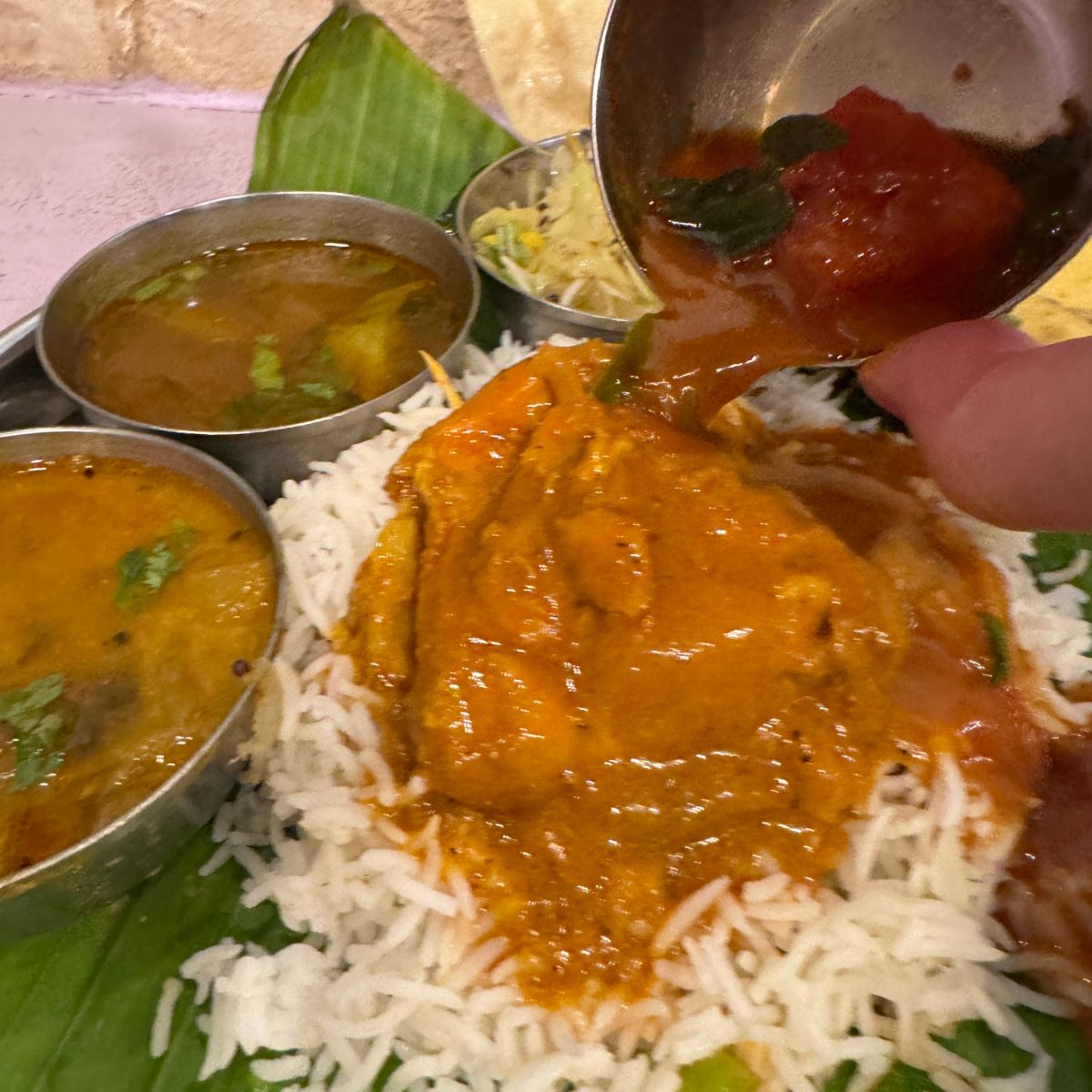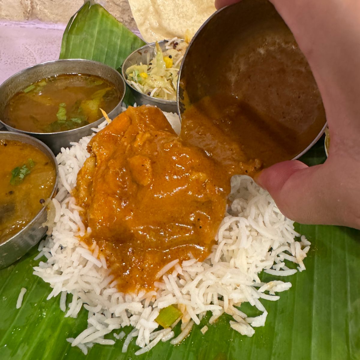 南印度料理トーキョーバワンで「バナナの葉に盛られた南インドの定食」を食べる