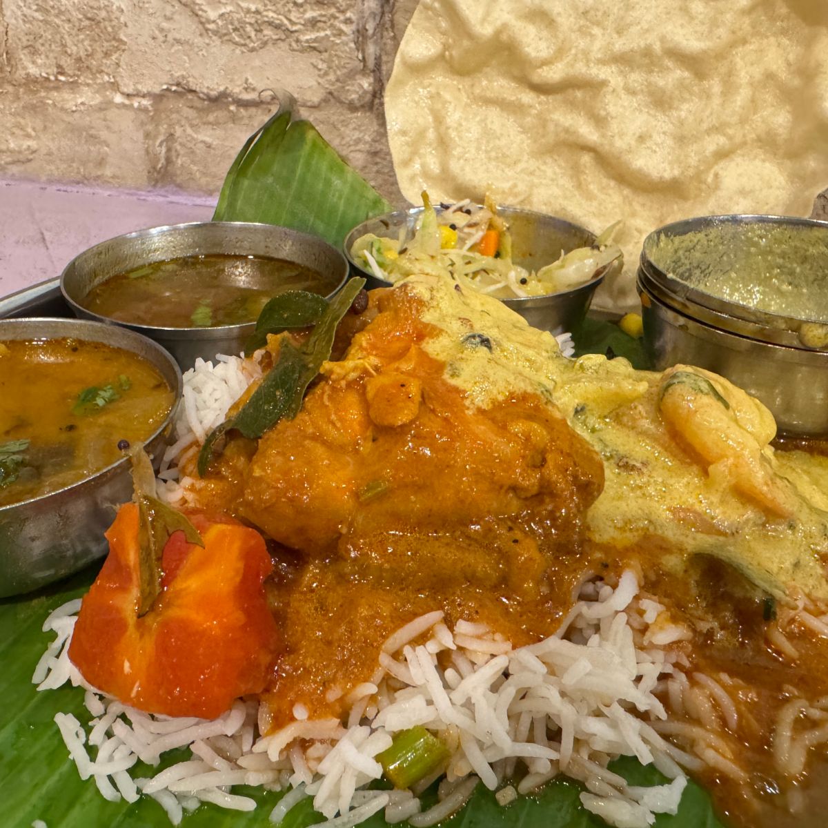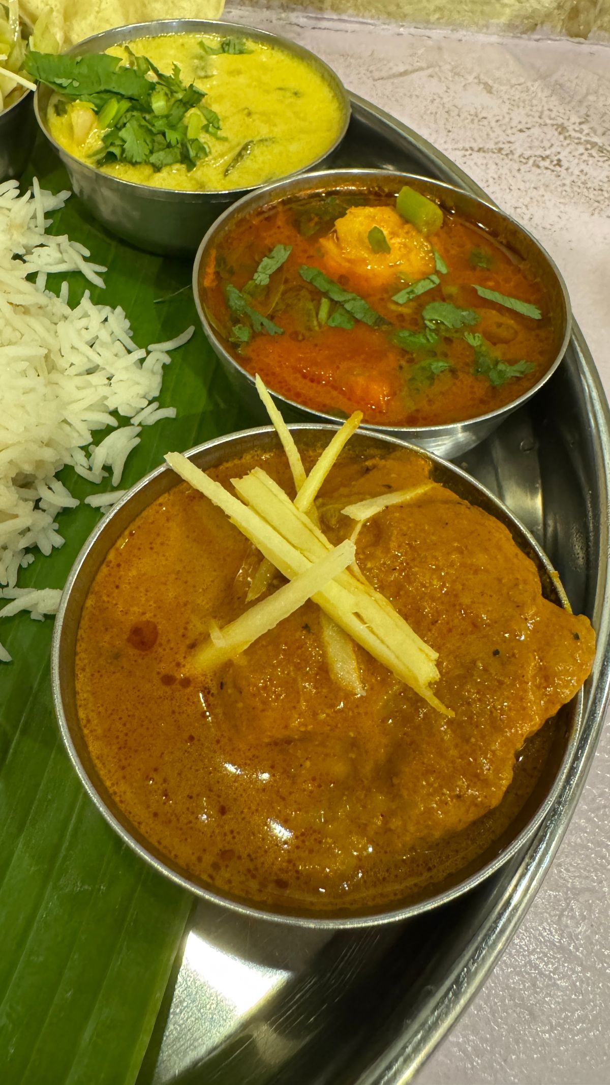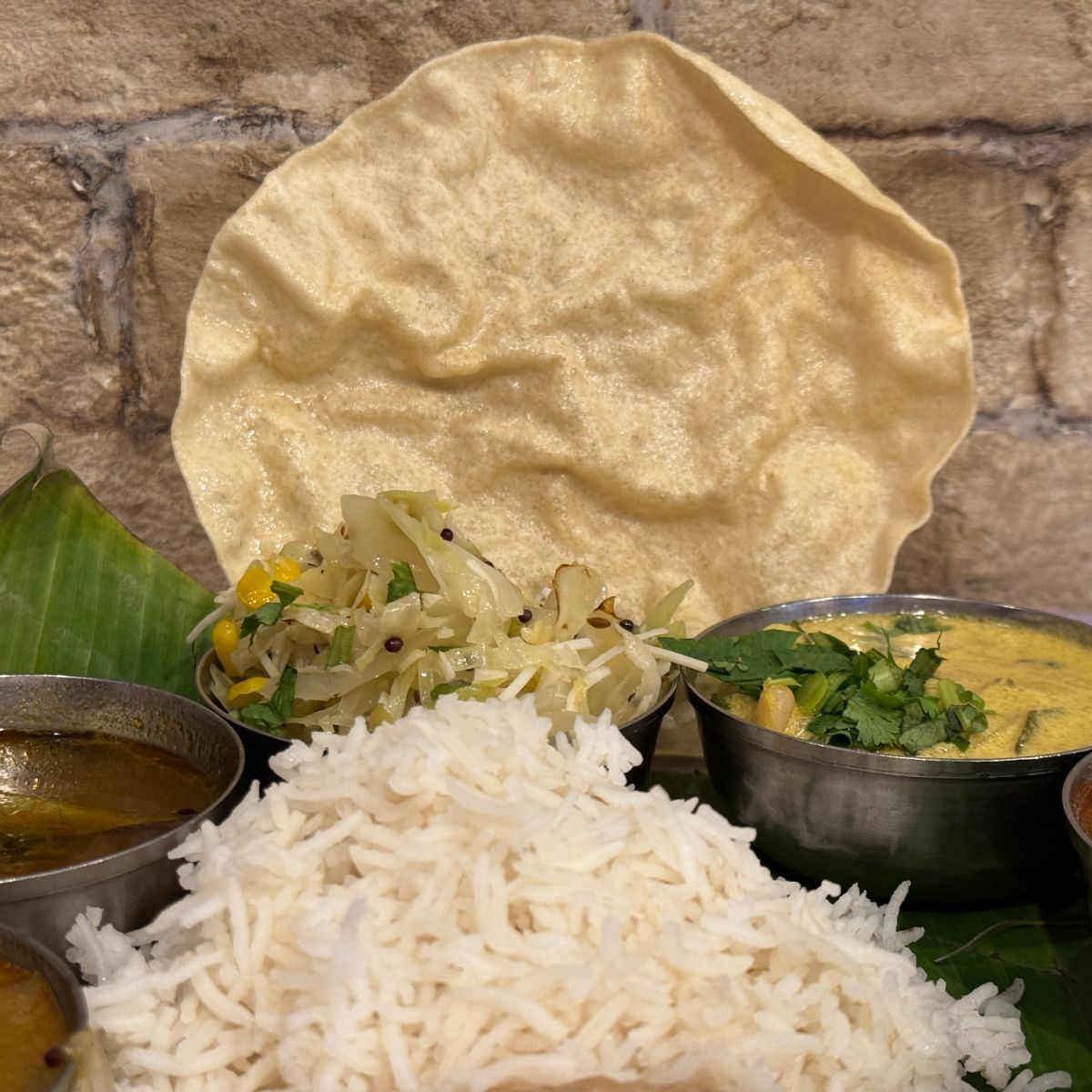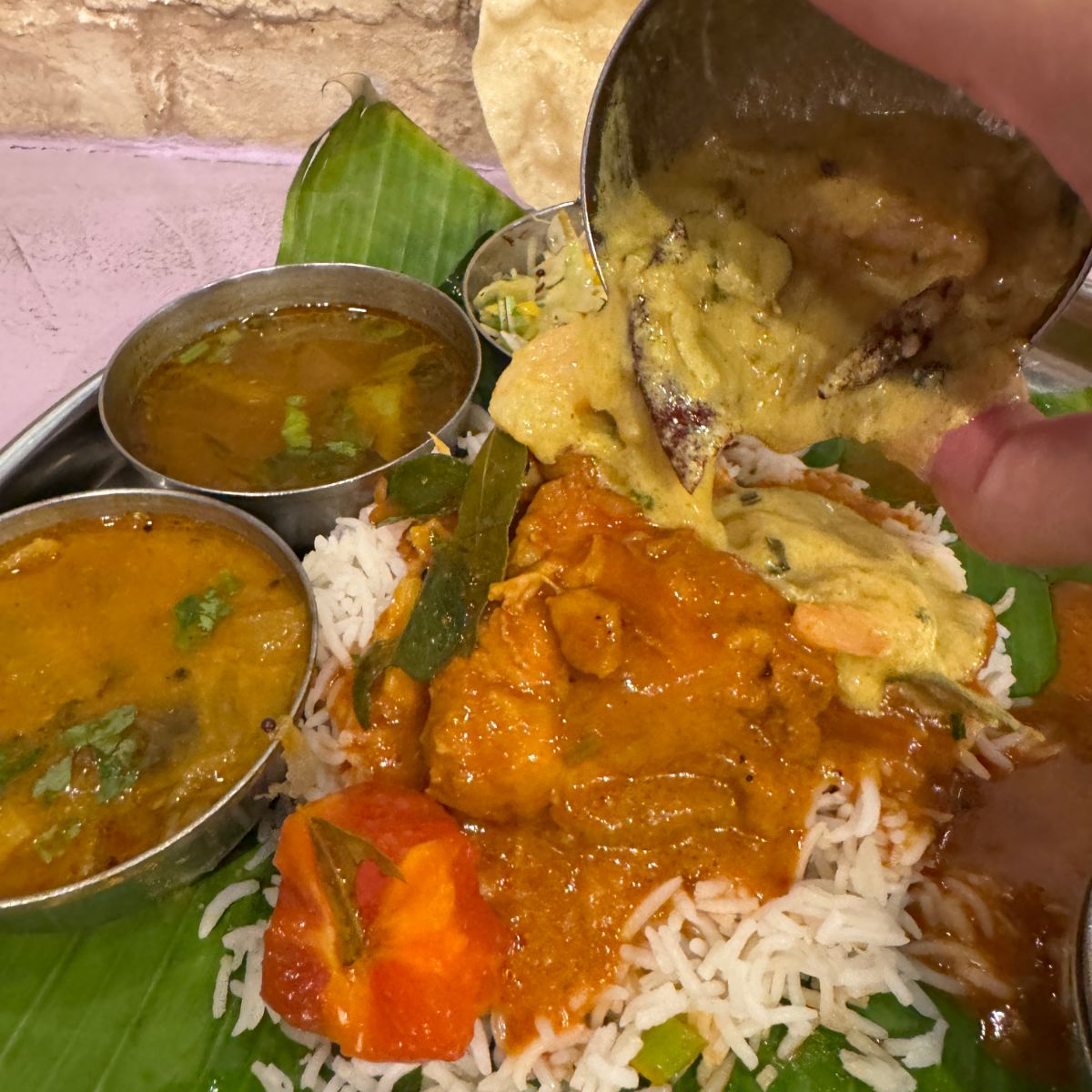 南印度料理トーキョーバワンで「バナナの葉に盛られた南インドの定食」を食べる