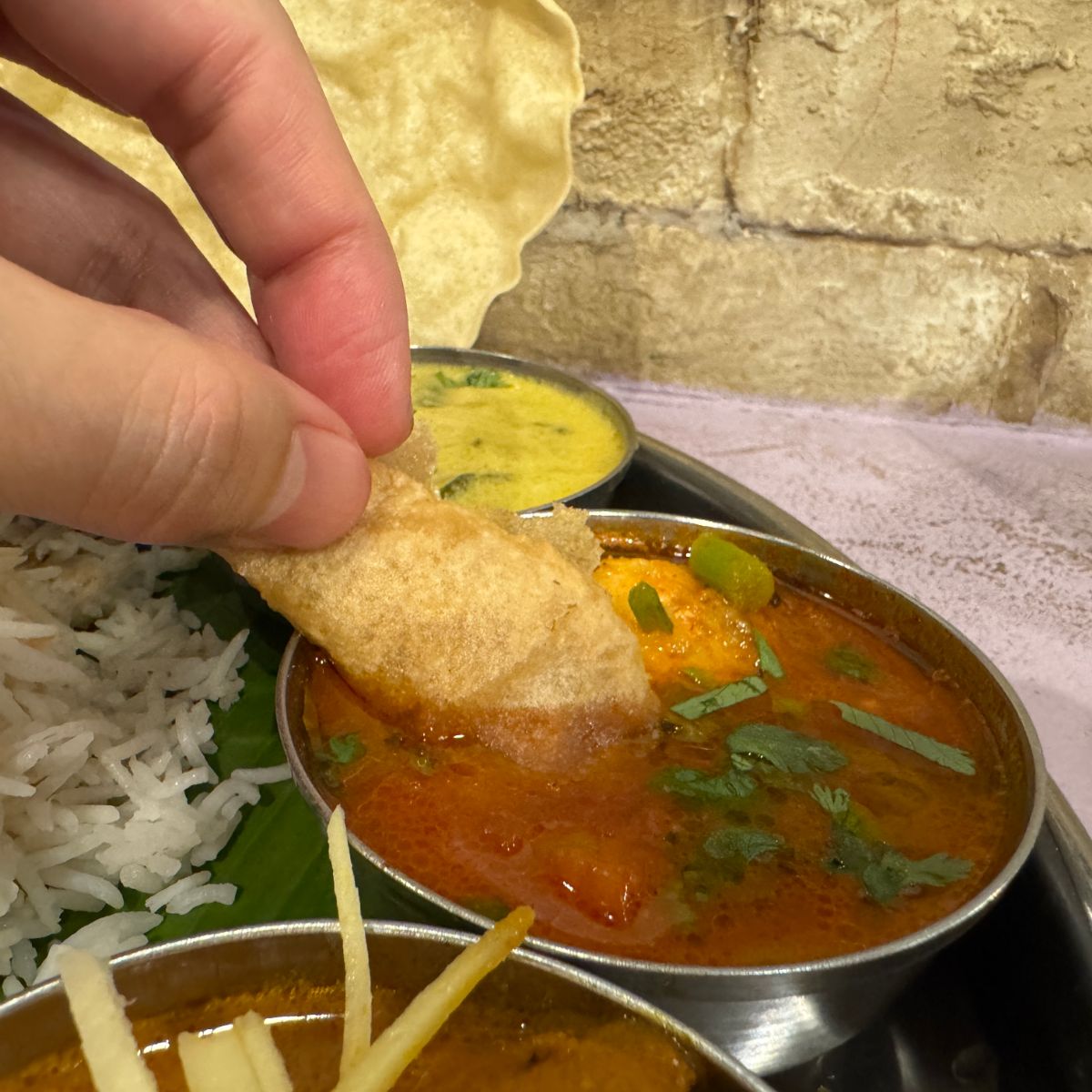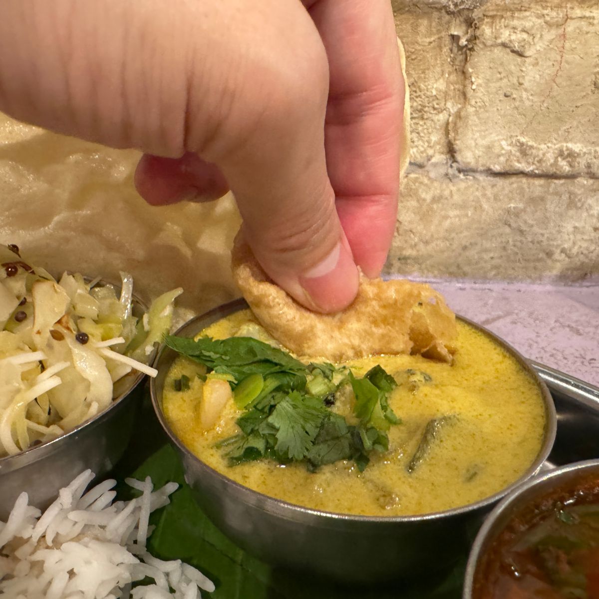 やっぱり、焼かれたコナモンってステキですね。カリカリでありながらシットリ食感のドーサが、薫りと相まって食欲を増幅させます。