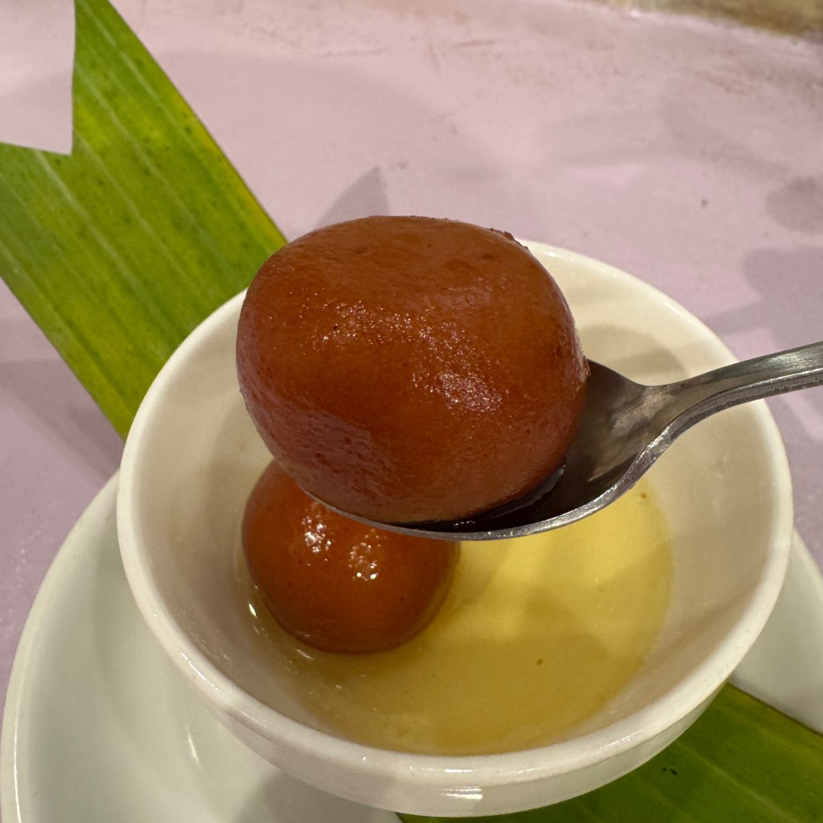 ラストは絶対にグラブジャムン。それはインドの甘すぎるお菓子。団子状にした生地にたっぷりとシロップを染み込ませたスイーツで、凄まじく甘いので、無糖のチャイと飲むと相性が良いです。これがもう、好きになったら最後、インド料理を食べるときにシメに絶対に食べたくなる魔力を持っています。
