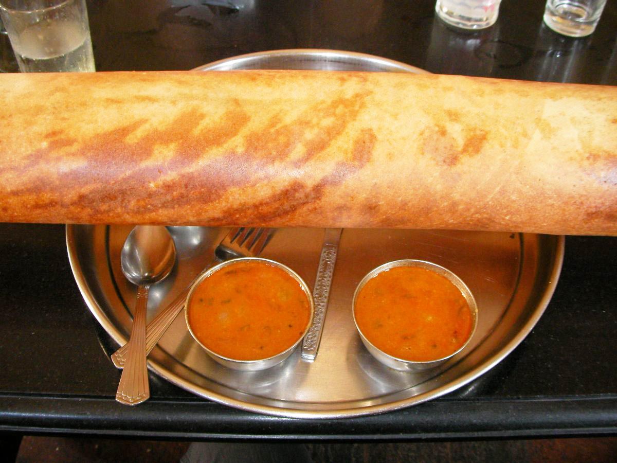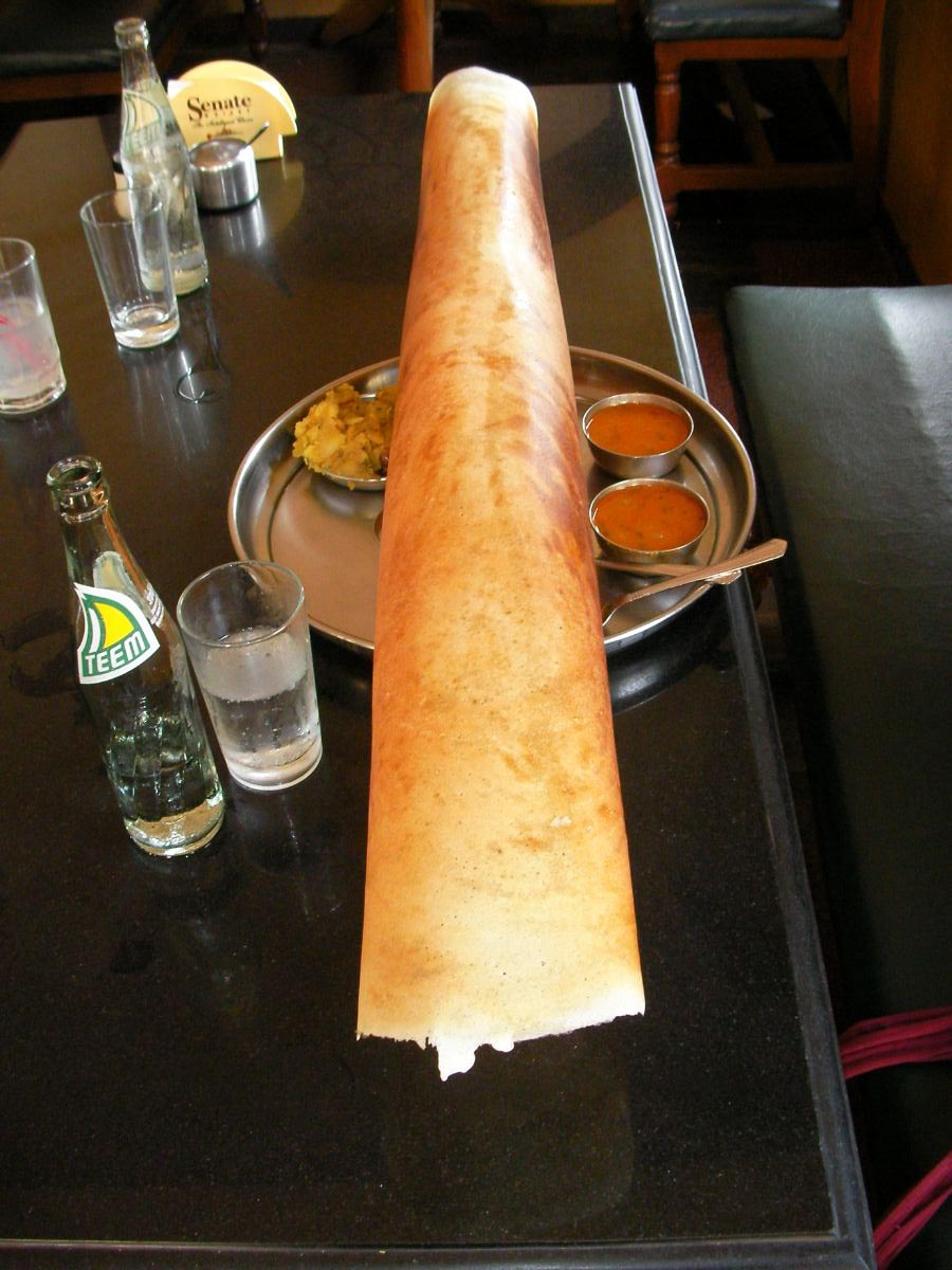 本場のドーサも食べたのですが、ドーサがあまりにも大きすぎて、そして長すぎて、ちょっとした衝撃をうけたのでした。南インドという地域におもしろさを強く感じた瞬間です。
