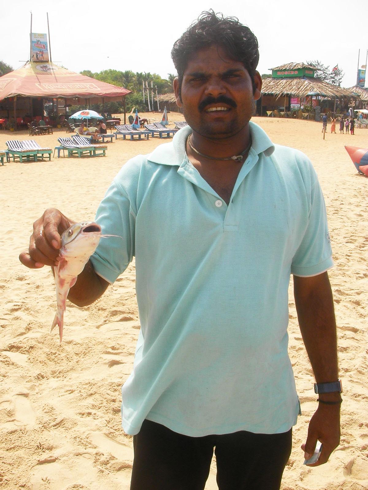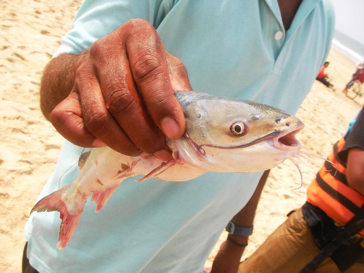 拾った魚を自慢してくるおじさんとの出会いも、楽しい経験でした。魚の種類、シーキャットフィッシュっぽいけど不明です。