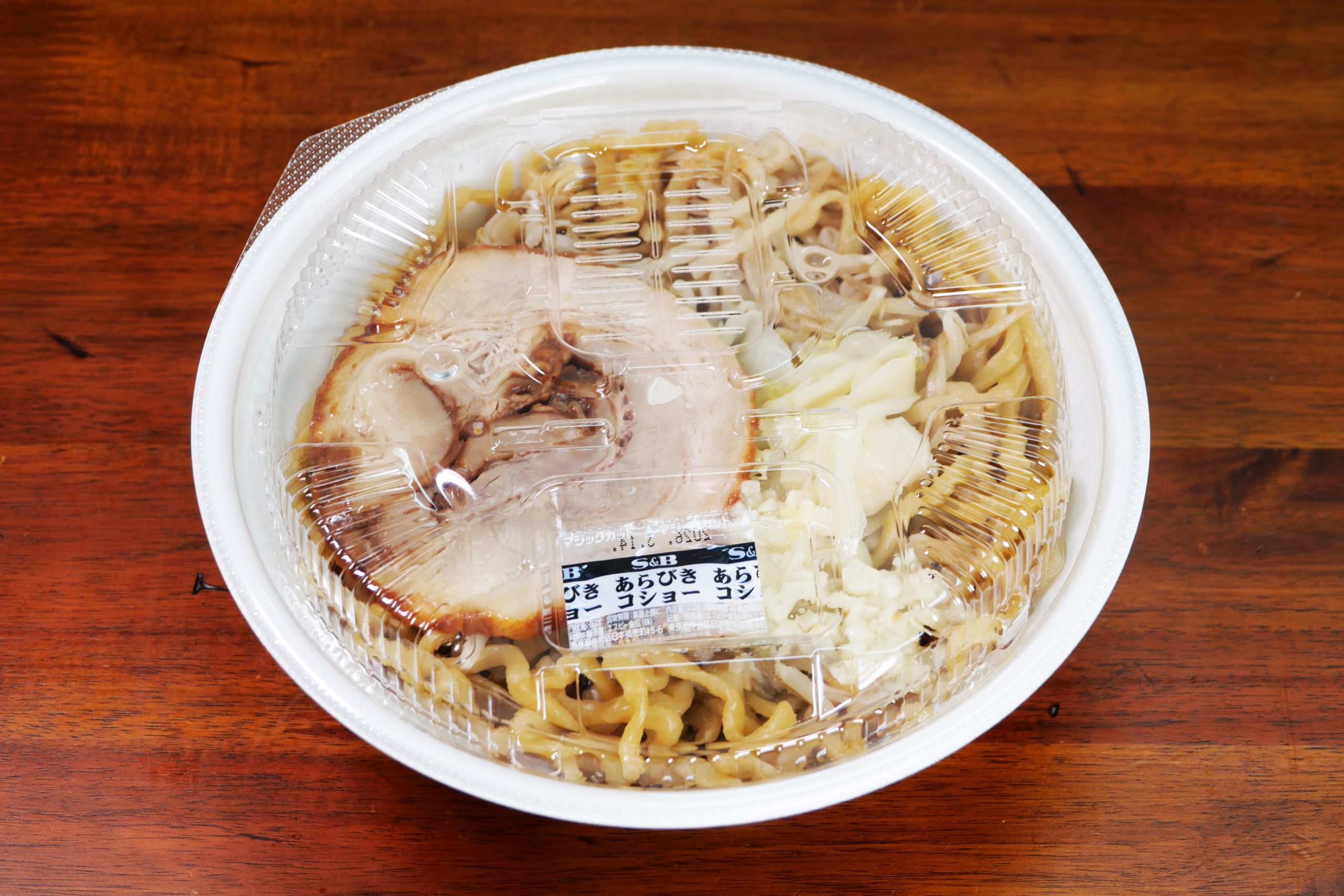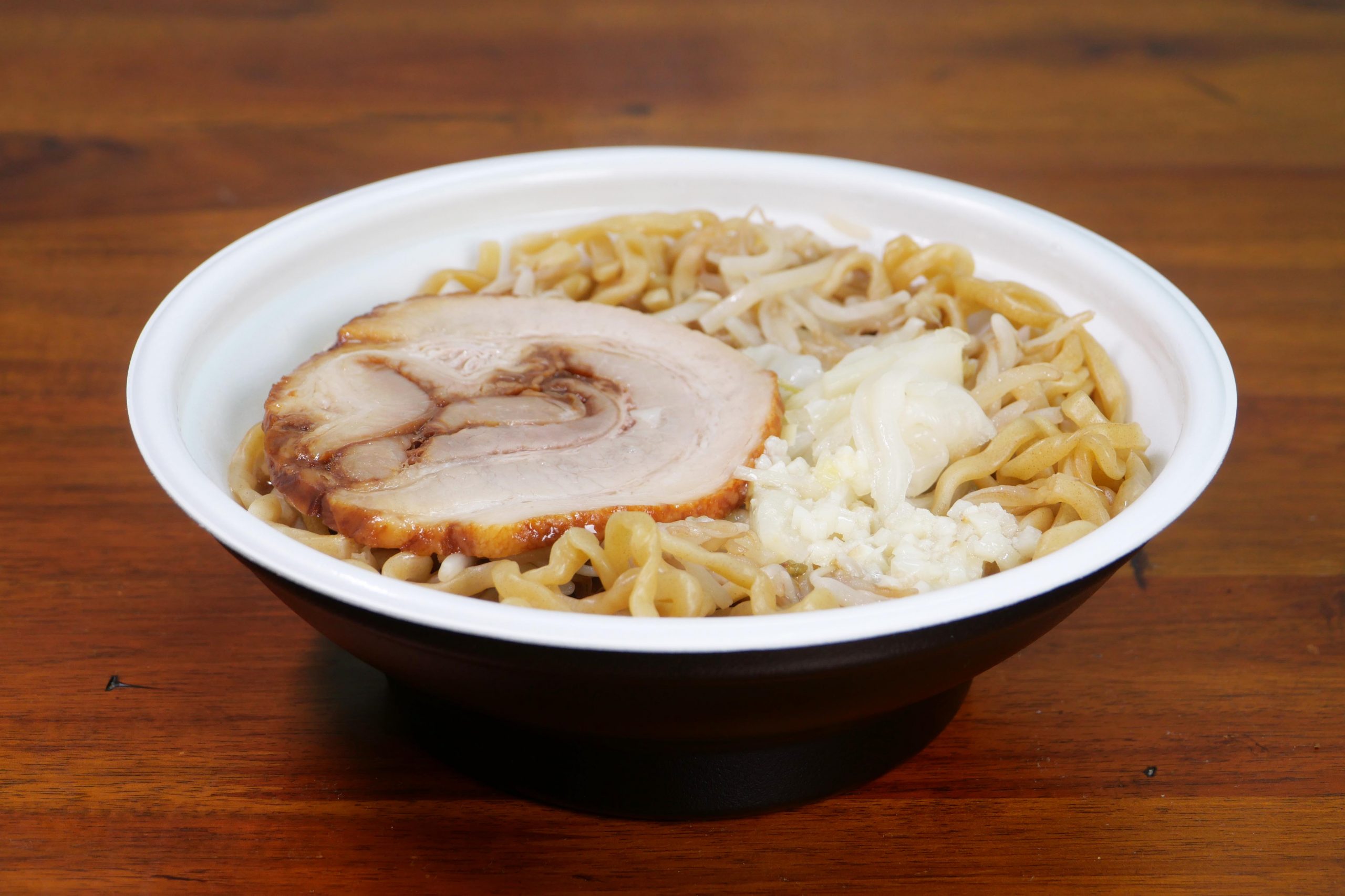 ブタはやや弾力があるものの、しっかりジューシーでパサ感ゼロ。なかなかのハイクオリティ。これがコンビニのラーメン二郎インスパイア系ラーメンなら文句なしのやつ。すごいやつだよ。