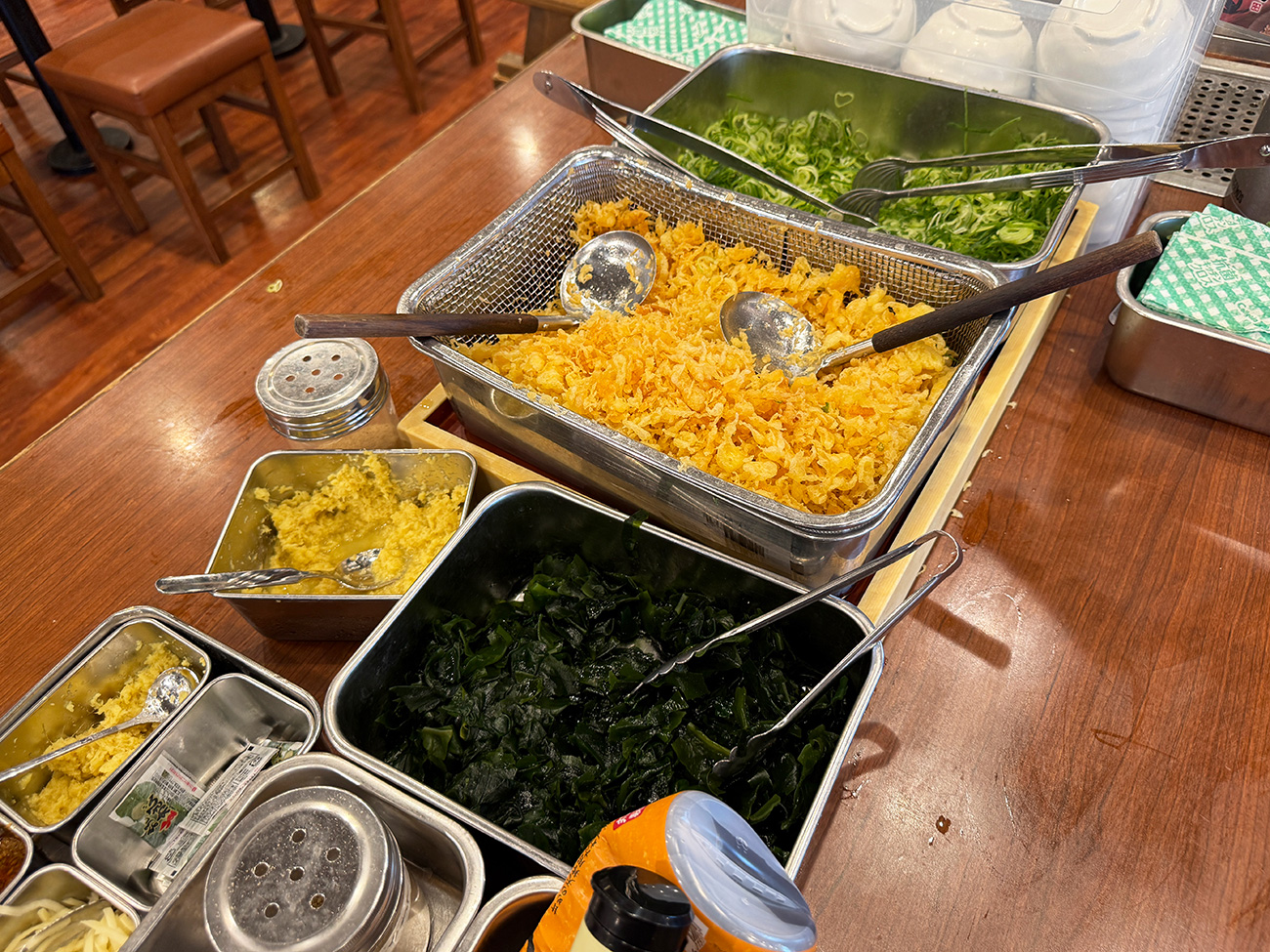 わかめはどんなうどんにも合うし、栄養たっぷり。無料で思う存分トッピングできるなんて最高すぎでしょ!