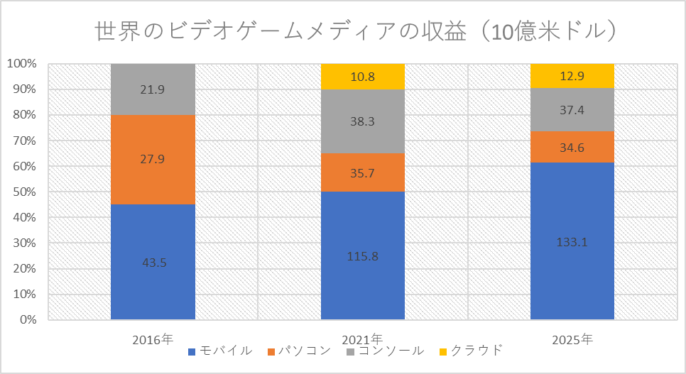 2025年以降、世界規模でモバイルゲームが台頭する時代が到来します。日本ではインターネット接続の拡大と高速インターネットの普及が進み、モバイルゲームは多くのユーザーに受け入れられています。人々は仕事や勉強などのために毎日通勤しています。モバイルゲームは通勤時間をより便利にし、退屈な時間から解放します。年間109百万人(全人口の88.2%)がインターネットを利用しており、より高速なインターネット接続へのアクセスが容易になったことで、「Last War: Survival」、「Royal Match」、「Whiteout Survival」といった人気ゲームのダウンロードが容易になっています。世界には3.32百万人以上のビデオゲームプレイヤーがおり、その大半はスマートフォンでゲームをプレイしています。2016ー2025年にかけて、様々なゲームメディアが生み出した収益を詳しく見てみると、より明確な見通しが得られます。