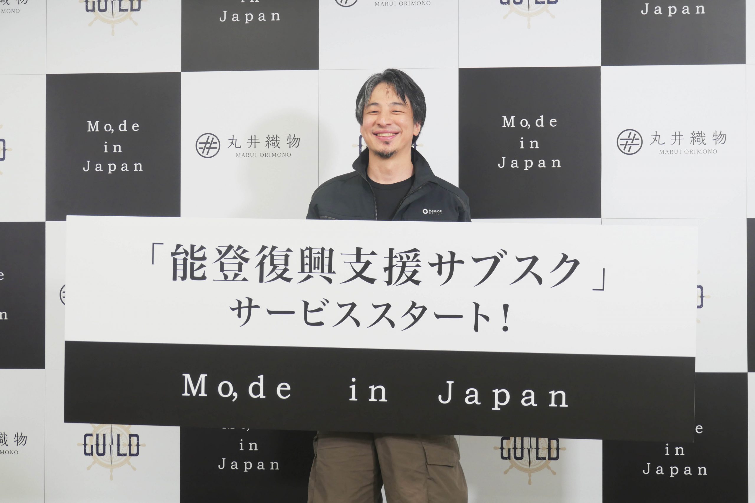 インターネット掲示板2ちゃんねる創設者であり、株式会社made in japan代表でもあるひろゆきさんが、協力者とともに、2025年5月23日から「能登復興支援サブスク」をスタート。そのサービス発表会が、石川県金沢市のアップティー株式会社・金沢工場で開かれた。