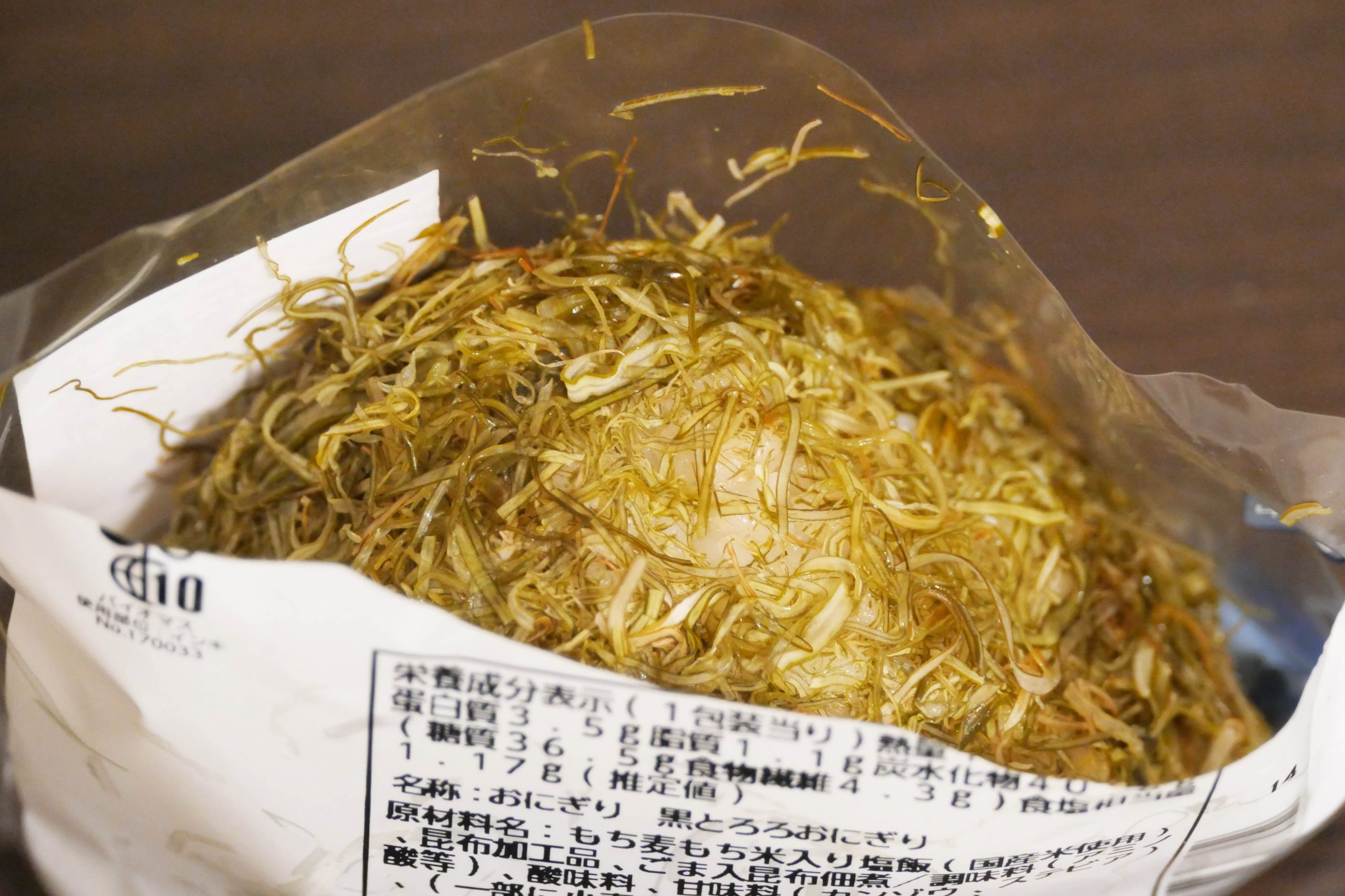 北陸地方のコンビニには、とろろを使用したおにぎりが売られていることが多いのだけど、ローソンの場合は、とろろはとろろでも「黒とろろ」なので、なんか言葉的に惹かれて購入。黒とろろが良い意味で粗めで、手に持つと、黒とろろの「ゴリッ!」とした形状が感触で伝わってくるのが楽しい。
