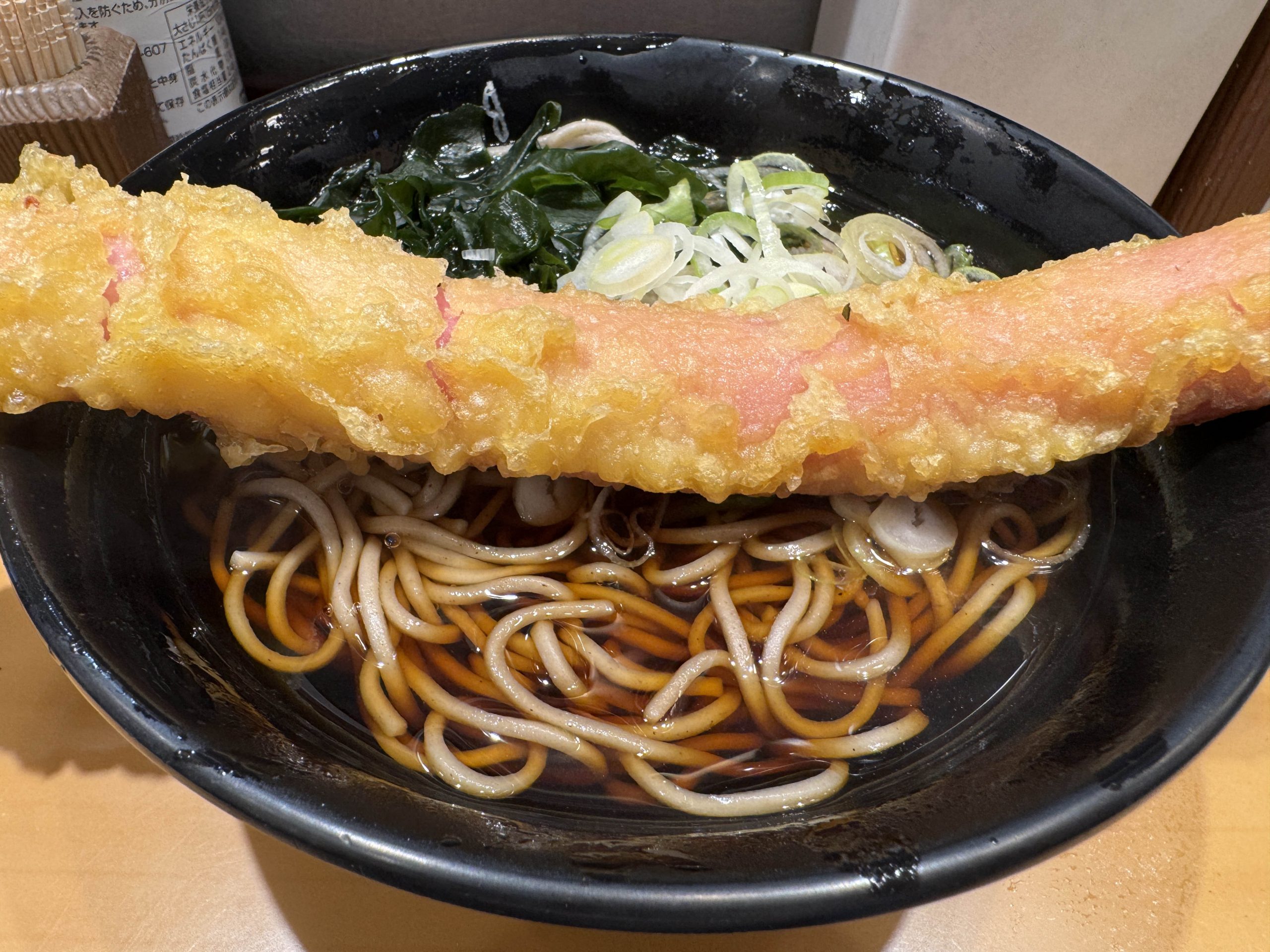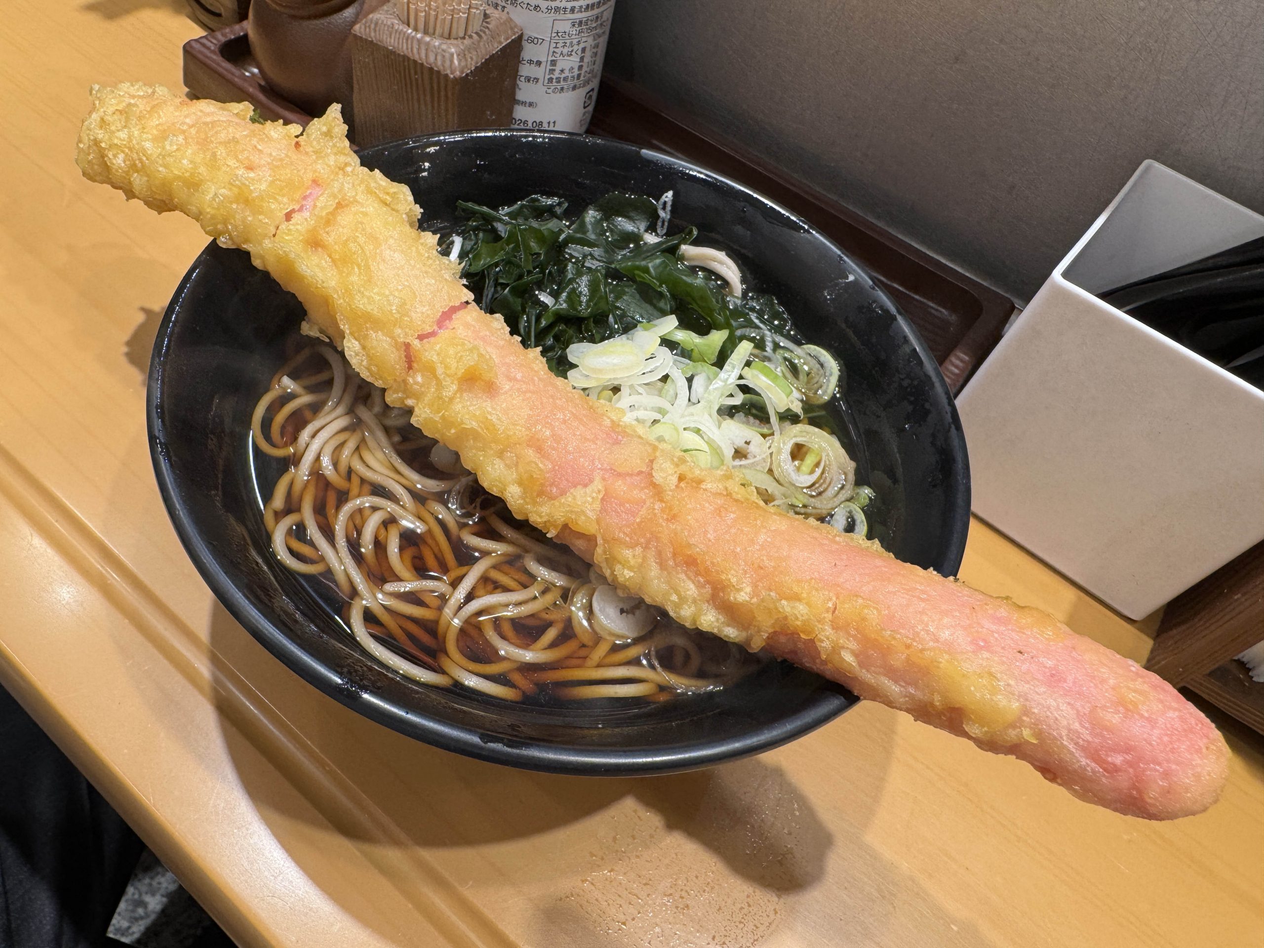 富士そばの「ロング魚肉ソーセージ天そば」がおいしいよ。こういうのでいいんだよ、こういうので。オカズはシンプルにロング魚肉ソーセージ天だけ。あとは蕎麦をすするだけ。そういうのでいいんだよ、そういうので。そういうのでね。