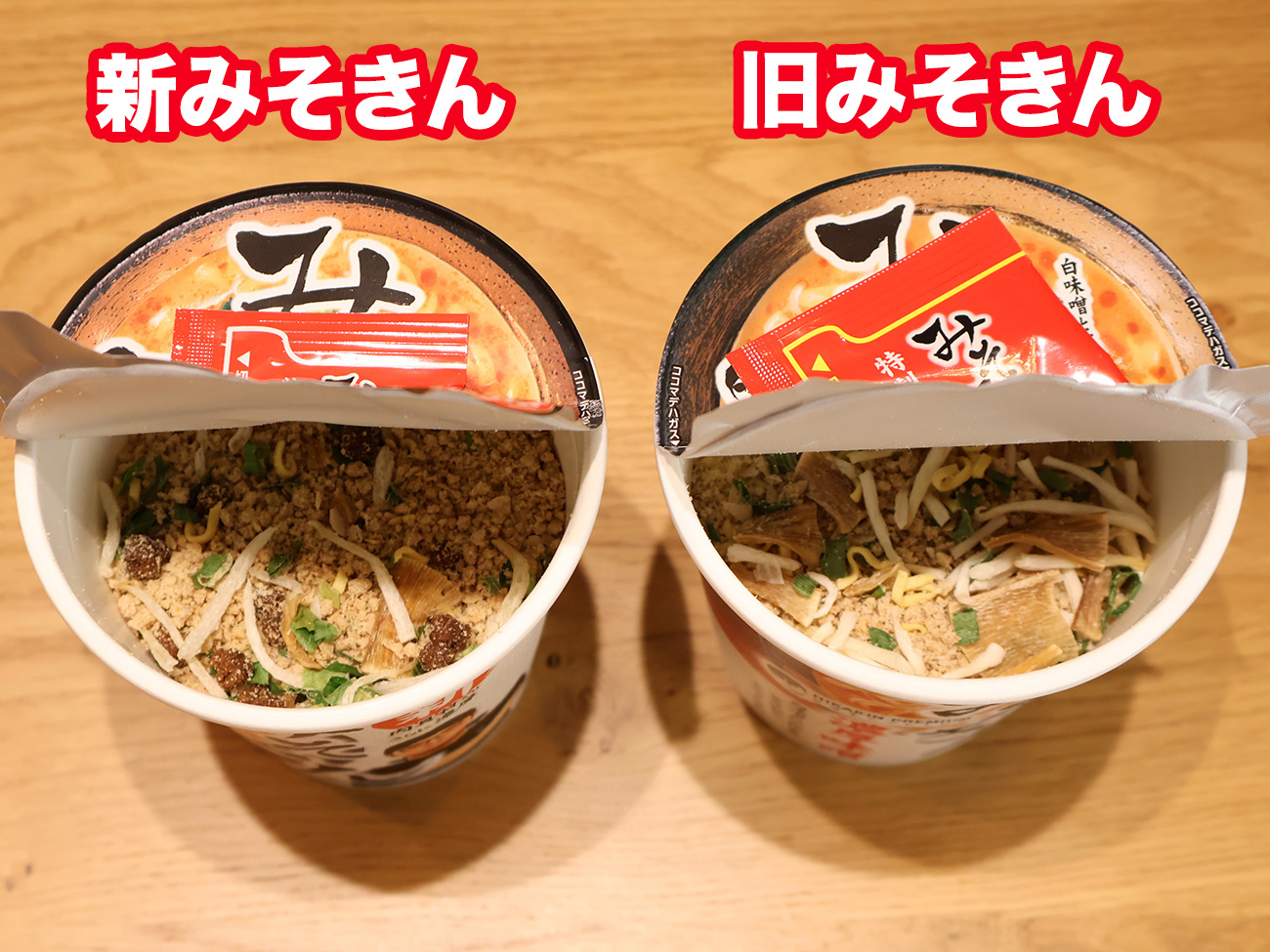 濃厚になったといえど塩分相当量は下がってるわけだし、そもそも旧みそきんだってしっかり濃厚だし、味の違いはじっくり飲み比べて気づく程度。今回はたまたま新旧を食べ比べできていますが、記憶の中の旧みそきんと食べ比べたところで違いがわかる人は相当なマニアなんじゃないでしょうか……。
