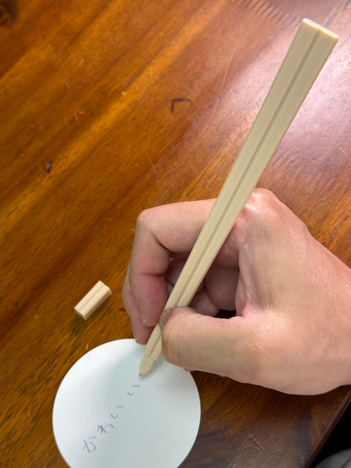 書けました! 先端以外は完全に割り箸ですが、しっかり文字を書くことができました! これ、なかなか楽しくて良いかもしれません。