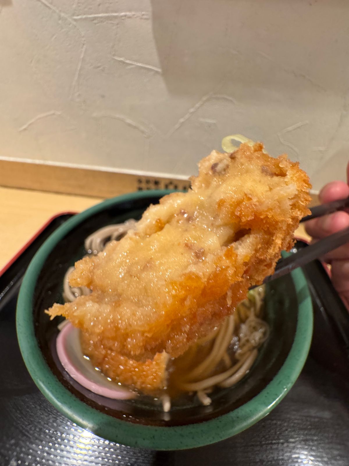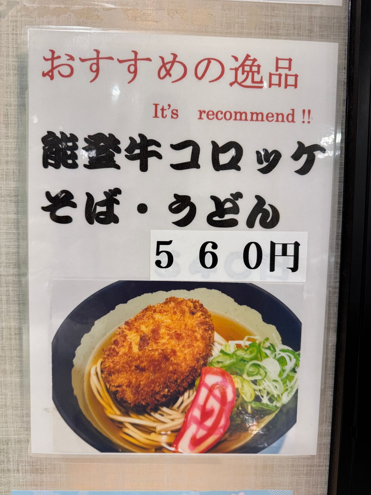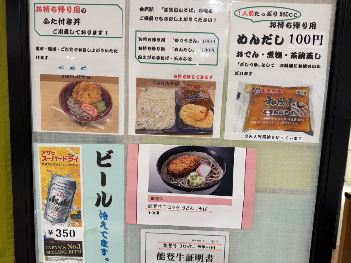 JR金沢駅の立ち食いそば屋「加賀 白山そば」で能登牛コロッケそばを食べる
