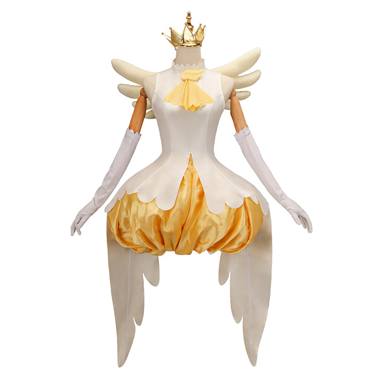 こちらの衣装は、桜ちゃんの象徴的なバトルコスチュームをさらに豪華にしたバージョンです。白と黄色のカラーバランスが美しく、翼のデザインが印象的です。詳細までこだわった作りなので、コスプレの本格派にもおすすめの一品です。