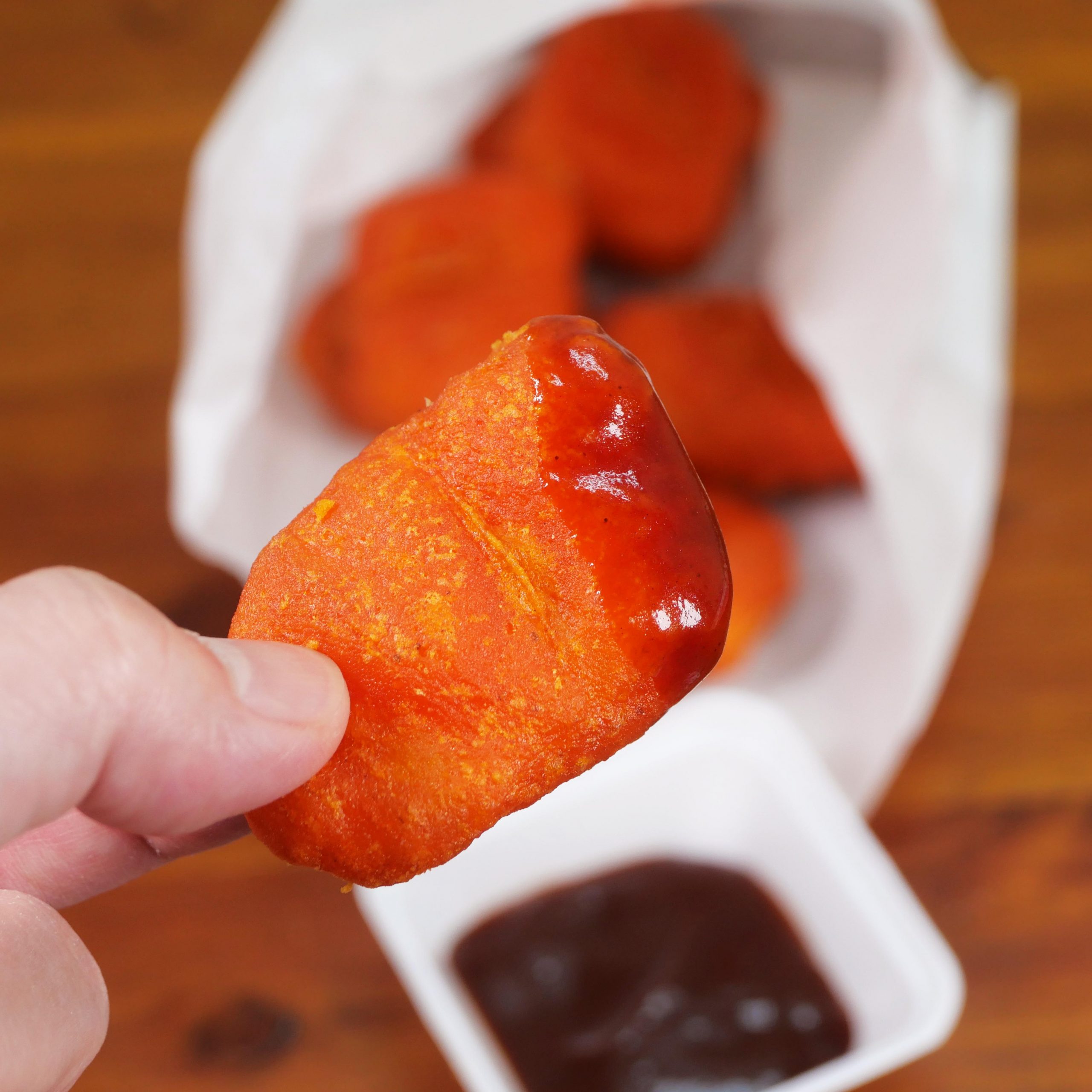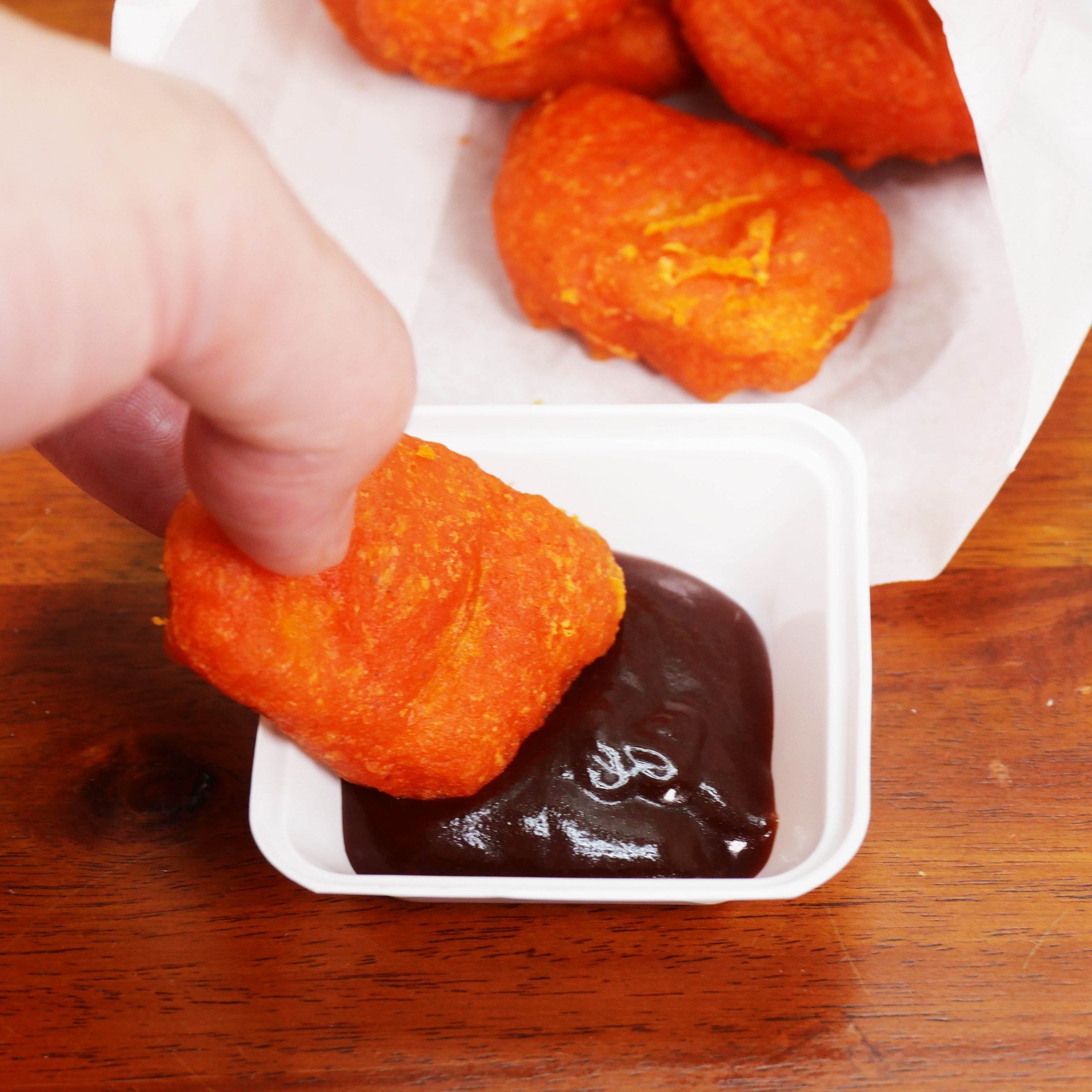 ちなみにこれ、ソースがついてくるのだが、バーベキューソースとの相性が特に良い。……が! 個人的には、ソースなしで、そのままチキンナゲット激辛ZIIの味を楽しむ流れが最高だと思っている。