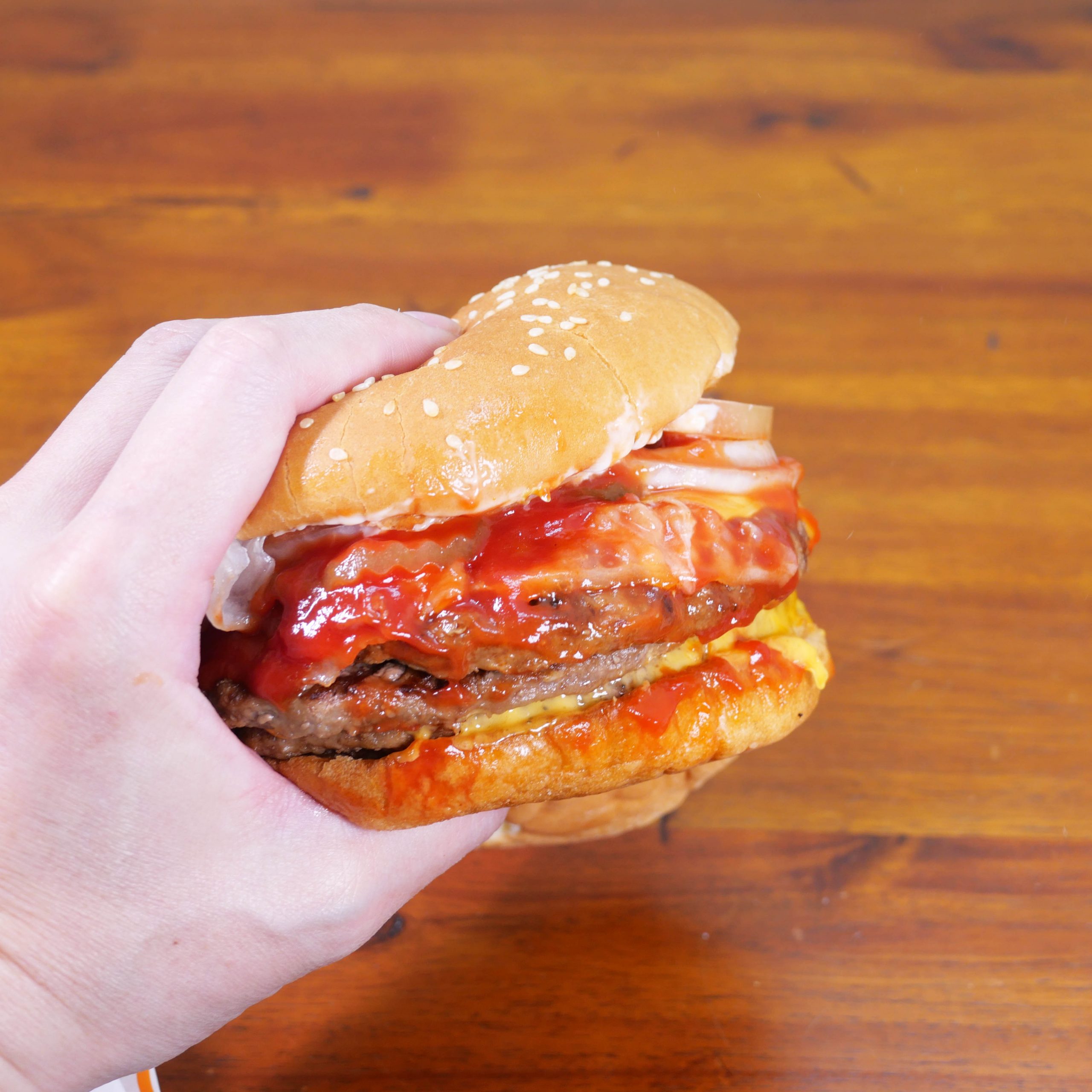 バーガーキング最大級のバーガー「デラマキシザワンパウンダー」をご存じか? 直火焼き100%ビーフパティ4枚とスモーキーベーコン4枚がドッサリとサンドされた爆裂バーガー。