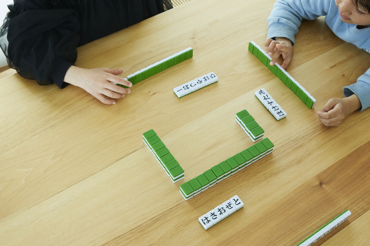 本作はNEXTが手掛けたボードゲームで、ひらがなの牌を使い、2文字1組と3文字4組の計5つの単語を完成させることが目的となる。麻雀の要領で牌を引き、手牌14枚で単語を揃える。単語が揃わない場合は牌を1個捨て、次のプレイヤーに順番が移る。7歳以上なら誰でも楽しめるシンプルなルールで、プレイ時間は約15分だ。