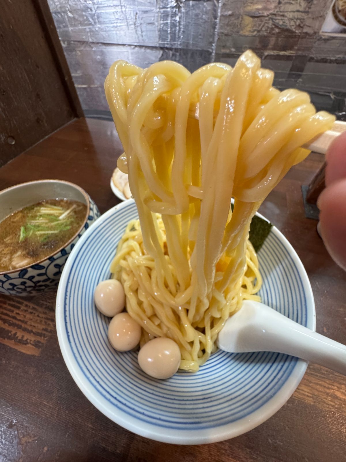 つけ麺の正式名称は「つけそば」。チャーシューも食べたかったので「チャーシューつけそば」をオーダー。トッピングはうずらの玉子。店員さんはとても優しくて明るい。初来店の客でも緊張感なく穏やかな気持ちで食べられるラーメン屋さん。ステキです。