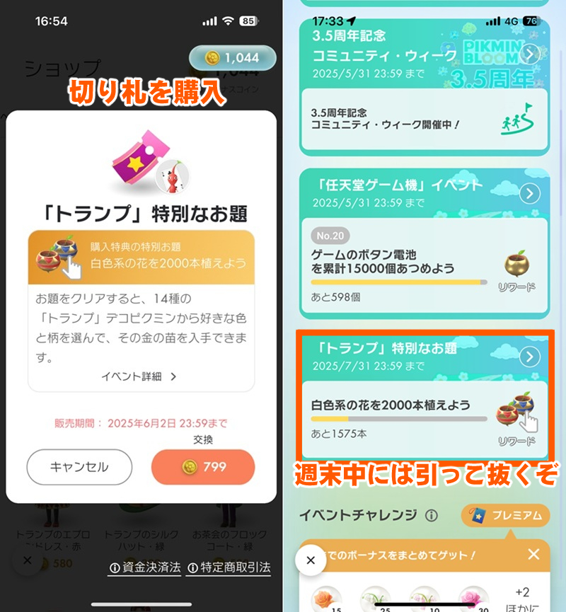 万が一、筆者と同じように今回のデコピクミンが揃っていないひとは、2系統とも“選べるお題チケット”が2025年6月2日(月)終日まで販売中なのでぜひチェックしてほしい。