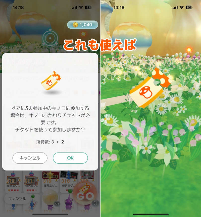 1日3回無料で挑めるキノコチャレンジを“ふつう”と“巨大”どちらのキノコに使うかだ。