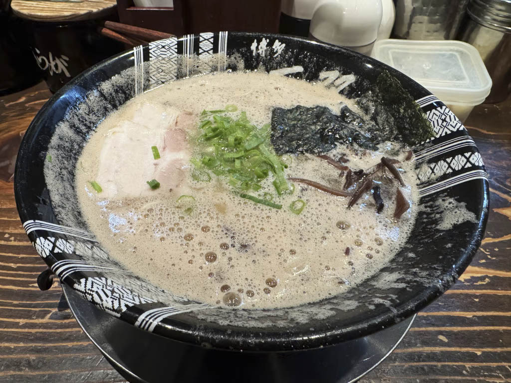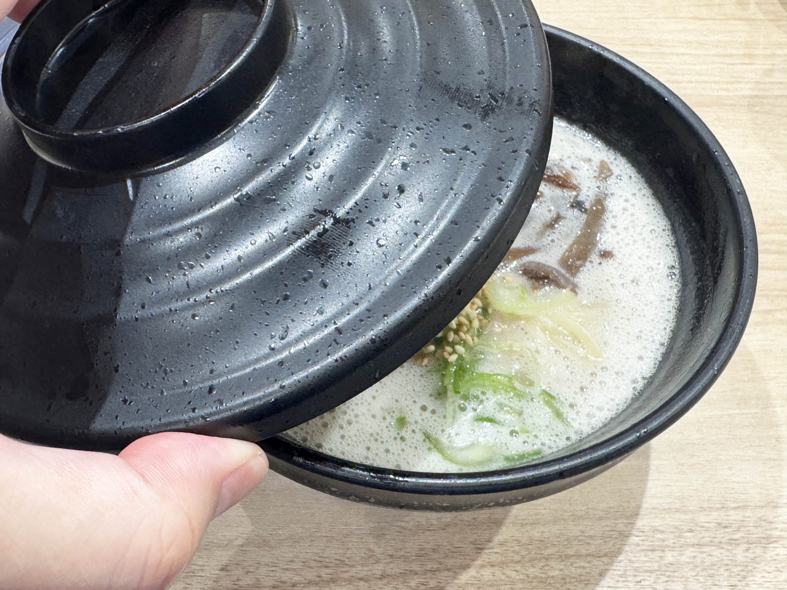 スープは塩味が強いもので、けっこうパワフル! 博多一双スープはマイルドテイストなので、その点、かっぱ寿司版の個性なのかも。お寿司や揚げ物など、ほかの料理も食べるかっぱ寿司の場合ですと、やや塩味が強めのほうが自己主張ができて満足度が高めになるのかもしれません。