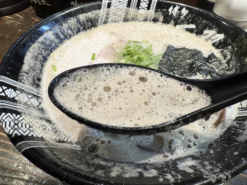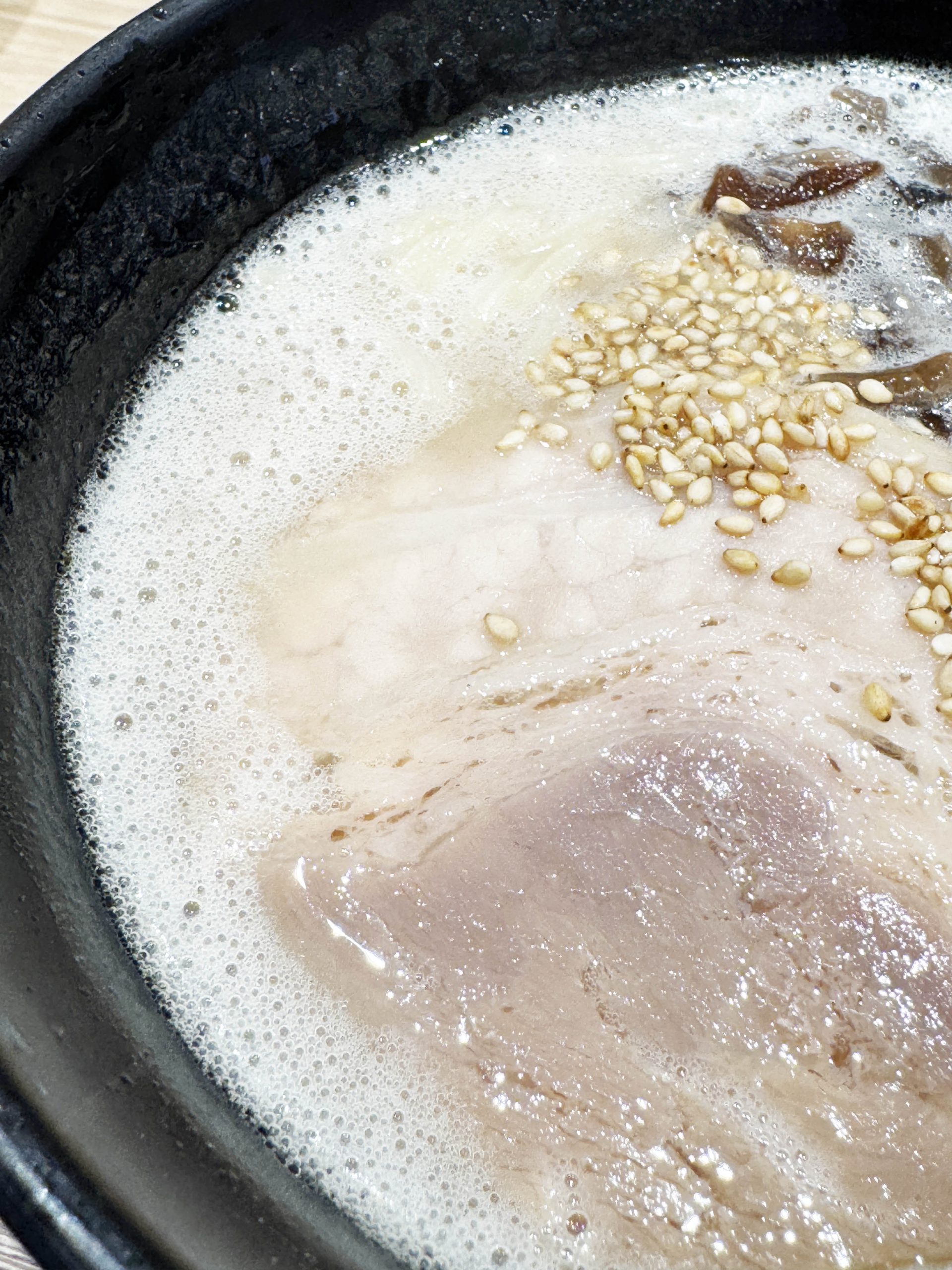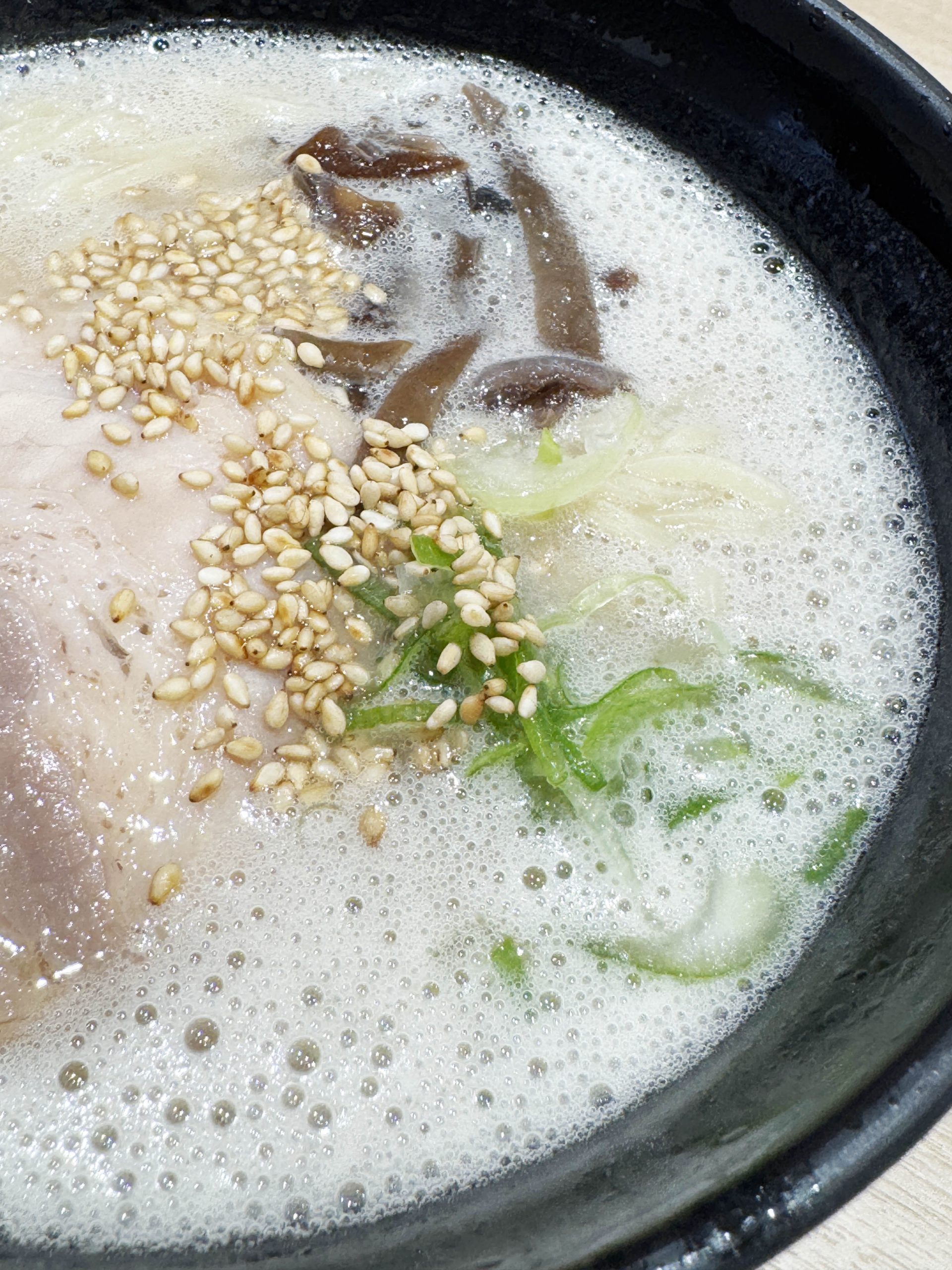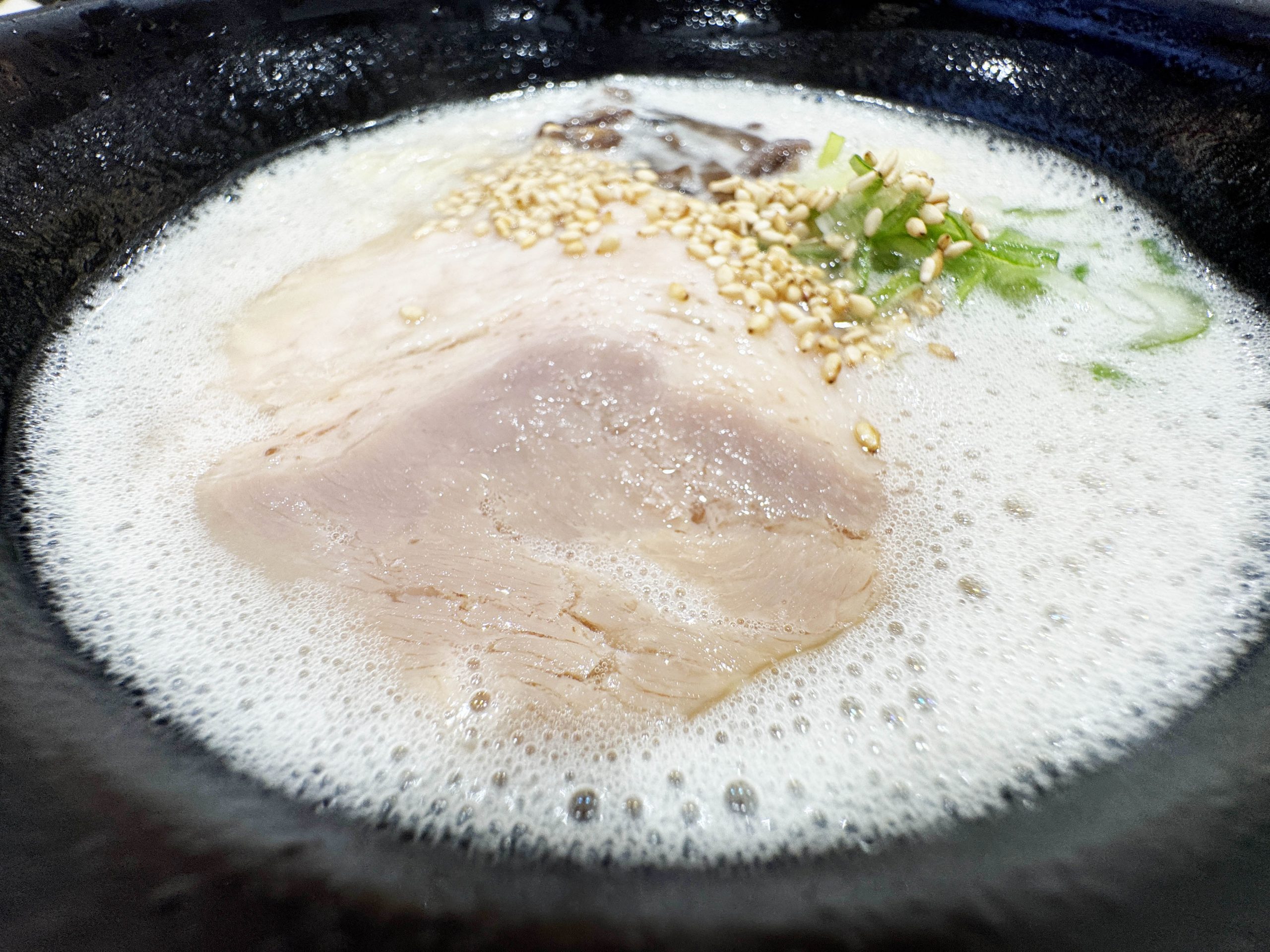 ビジュアルは、かなり博多一双の潮流を感じます! アワアワで、カプチーノな感じで、具もしっかり多めに盛られている印象。やっぱりこのアワアワがスゴイ。かなり視覚的に食欲を刺激します。