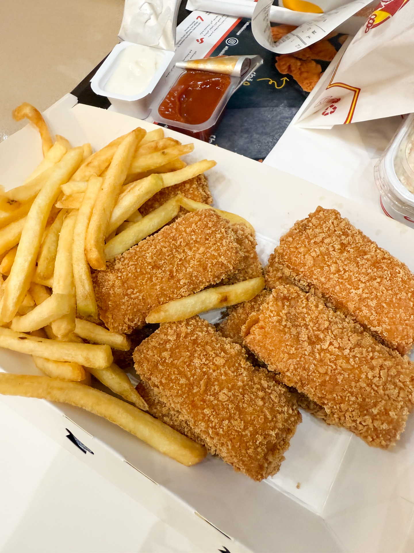 そしてアルバイクで外せないのが、ガーリックソースの存在です。この白いクリーミーなソースはニンニクの風味が効いており、これを付けて食べるとチキンやポテトとの相性も抜群。ガーリックソースにケチャップソースを組み合わせてソース重ねで食べる方法もある。チキンナゲットのサイズとこのソースのボックスはジャストサイズで、まさにナゲットのためにこのソースボックスがあるのではないかと思うほどだ。
