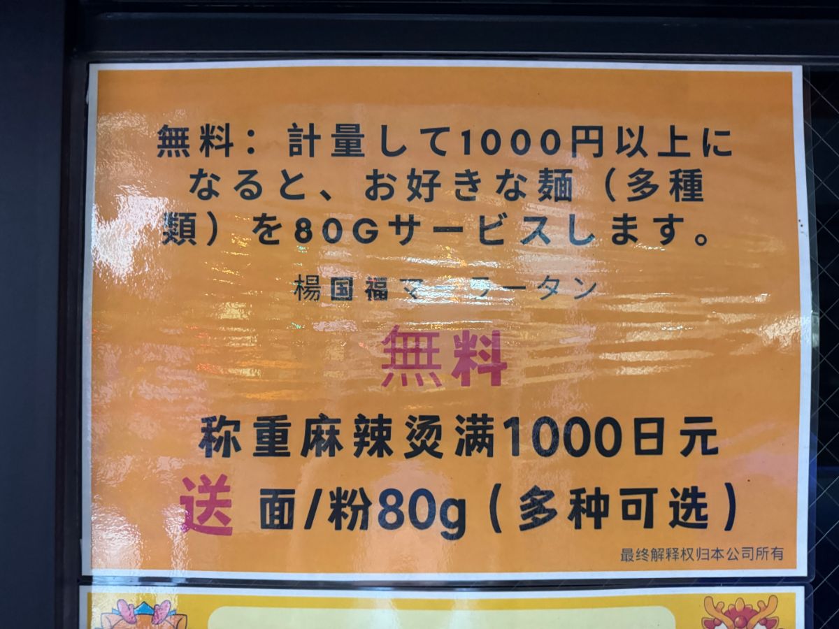 でも1000円以上の支払いになると麺が無料でもらえるので、具だけ1000円分集め、麺を無料で入れてもらうとベスト!!