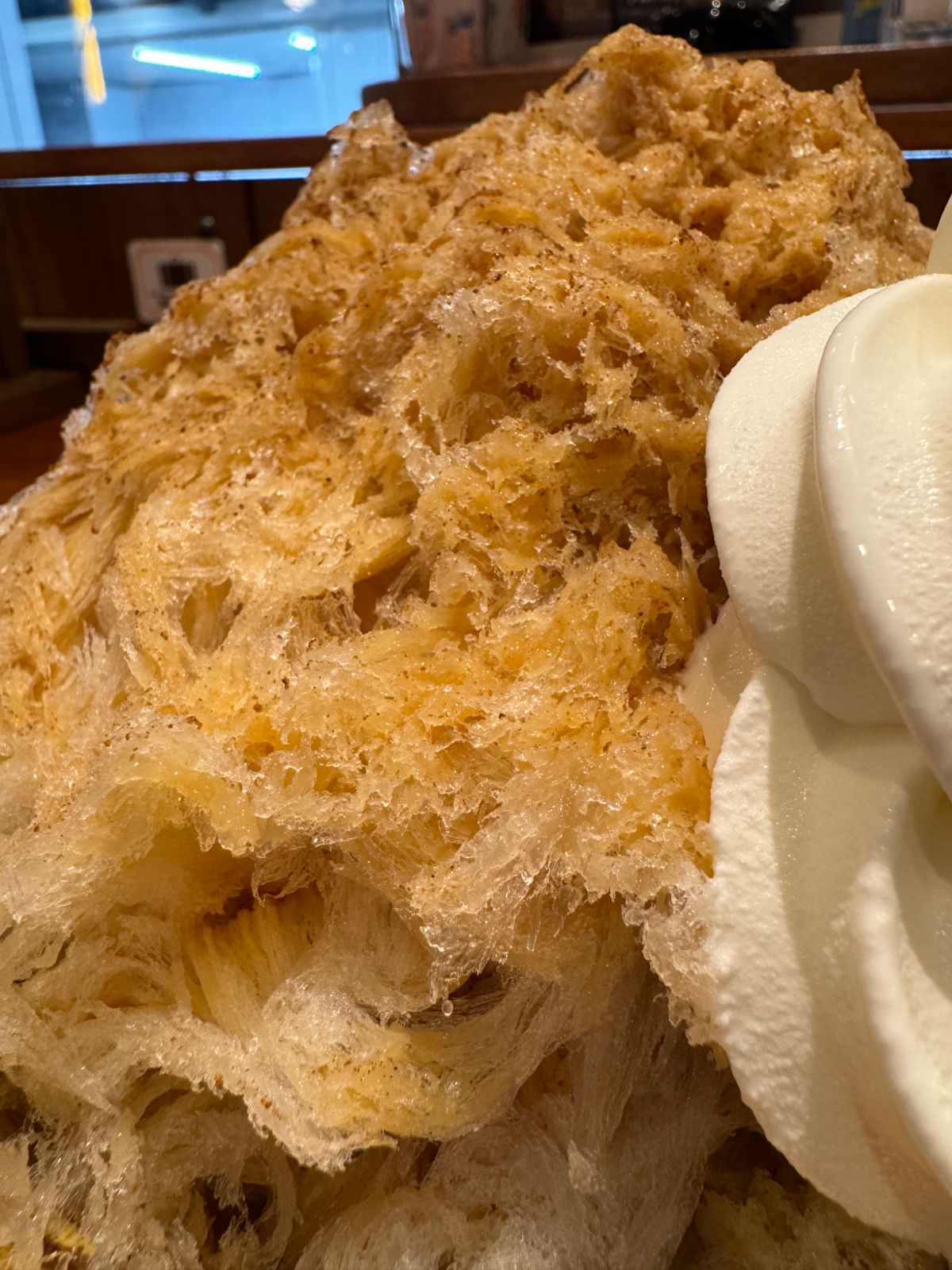 今回はカキ氷だけを食べたが、これ、温かいミルクティーと一緒に食べるとチャイテイストにグラデーションが生まれて、よりおいしさを楽しめるかもしれない。また、温かさと冷たさのダブルでチャイを堪能できそう。次回は、そうしたい!!