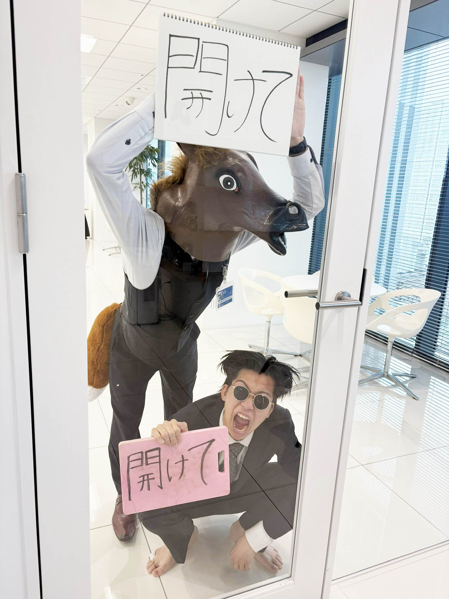 面接結果はどうだったのか? まさかの採用なのか? それとも不採用だったのか? どっちだったのかは不明だが、のちに「閉じ込められたウマとメンチニキの画像」が公開されており、他のGMOスタッフが危険を察知し、ふたりを捕獲したのかもしれない。