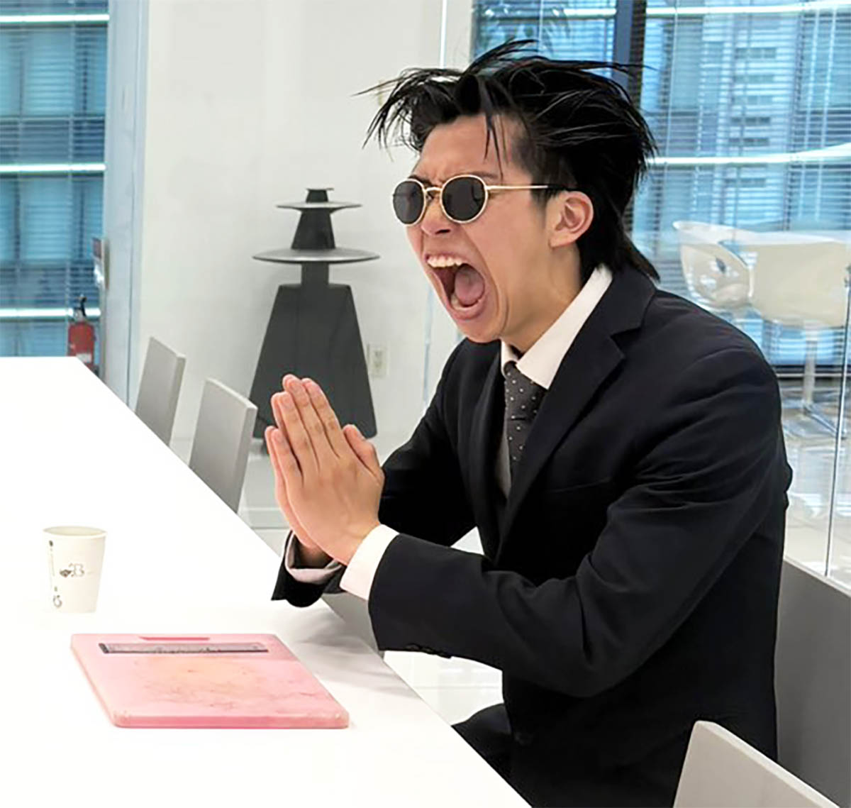 メンチニキは自身の就職活動を公式Xアカウントで報告しており、どうやら、IT大企業であるGMOに面接に行ったようだ。公開された面接時の画像を見てみると、社内でもメンチを切ったようである。みずから採用率を下げに行く男、採用率が下がってもポリシーを貫く男、メンチニキ!