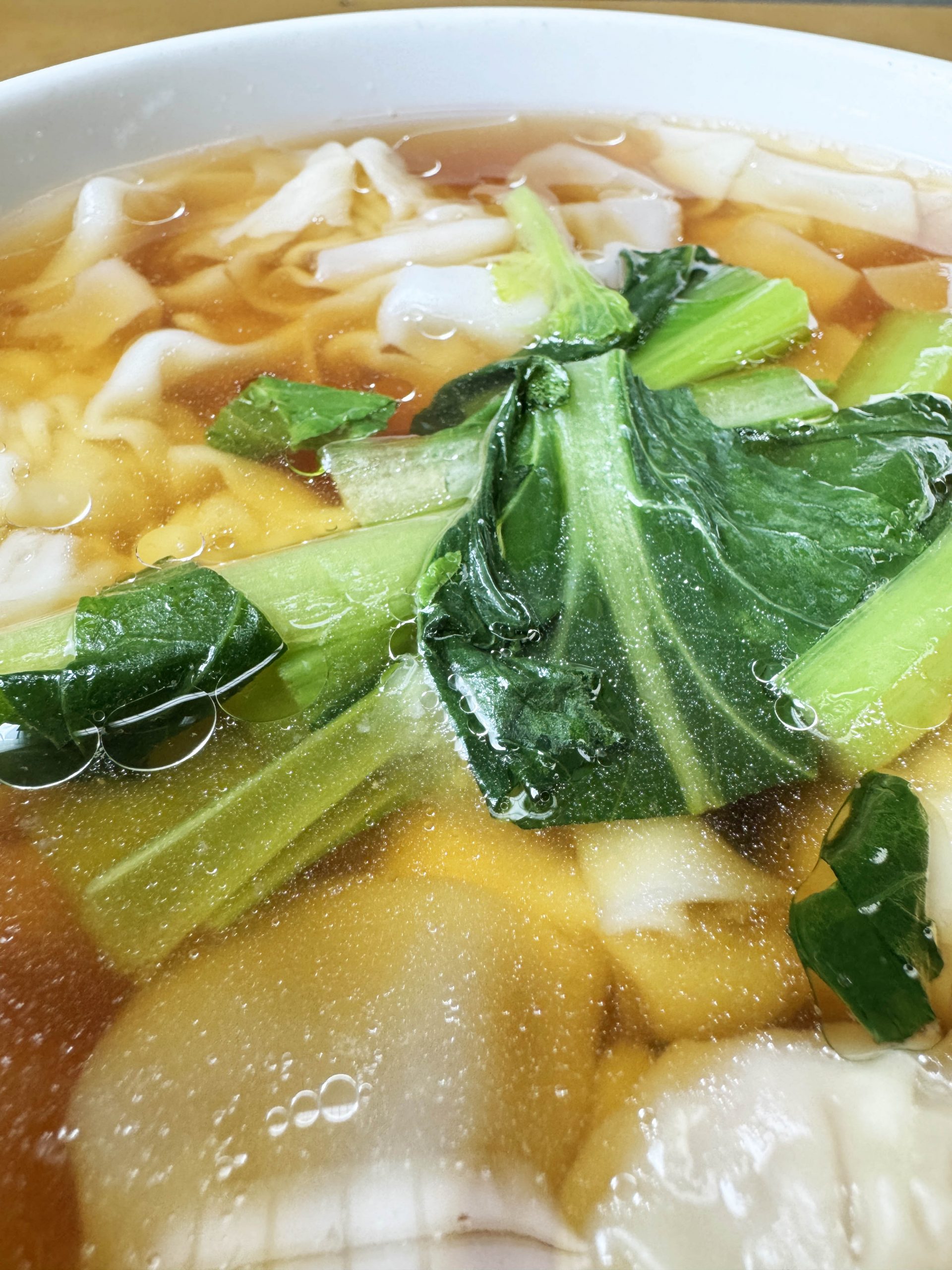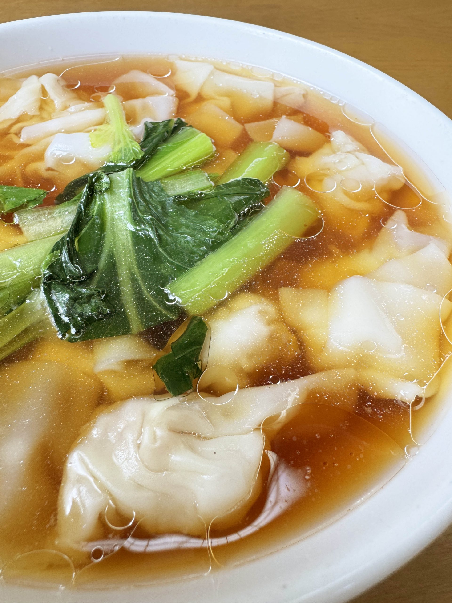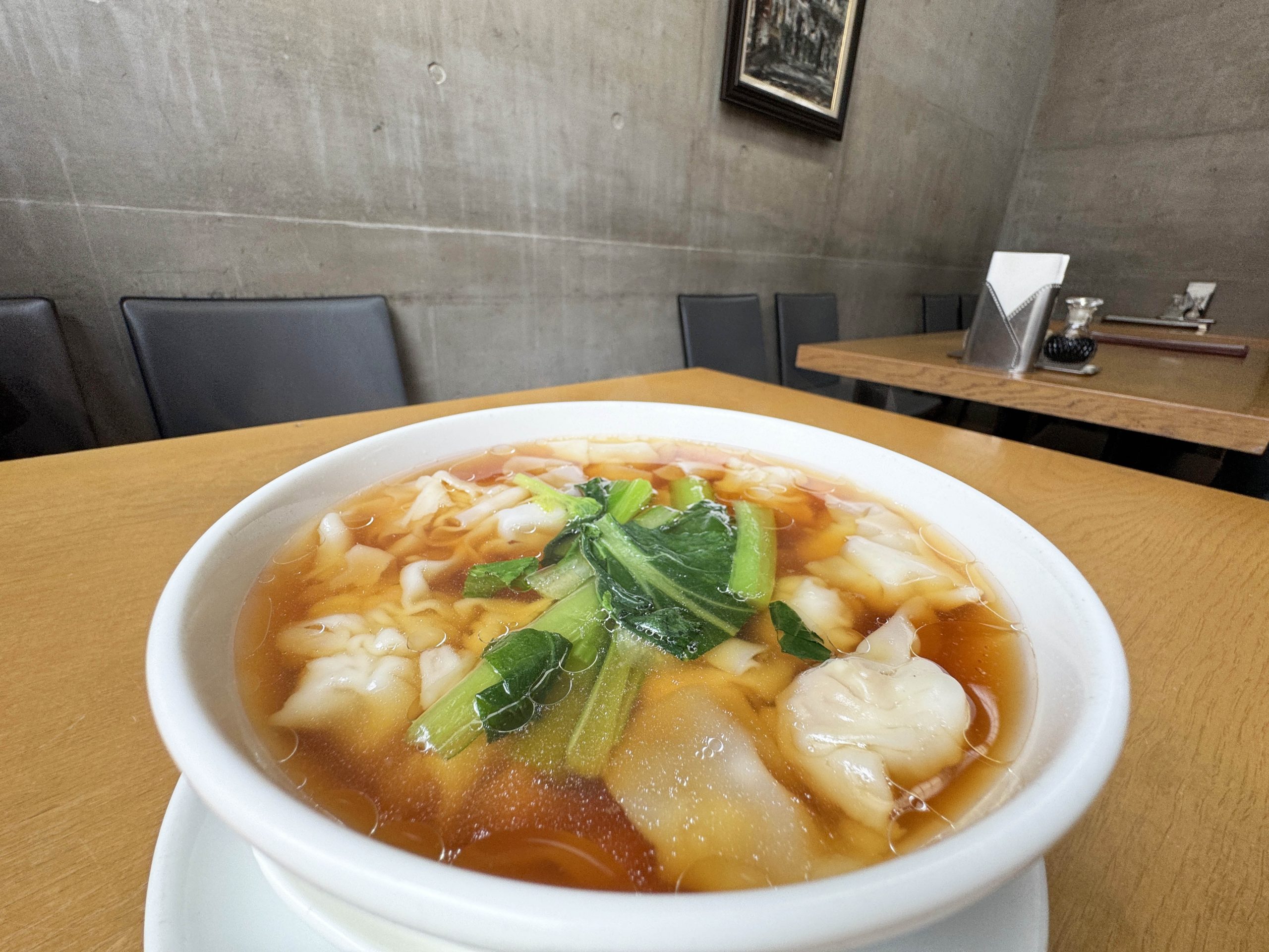 目の前にやってきた海老ワンタンですが、かなり大きめの丼! そこになみなみとスープたっぷり。海老ワンタンたっぷり。これは食べ応えがありそう! でも、多すぎるかな? ……って思うでしょう? それが、ペロリと食べきれてしまいました! 絶品すぎるのです!!