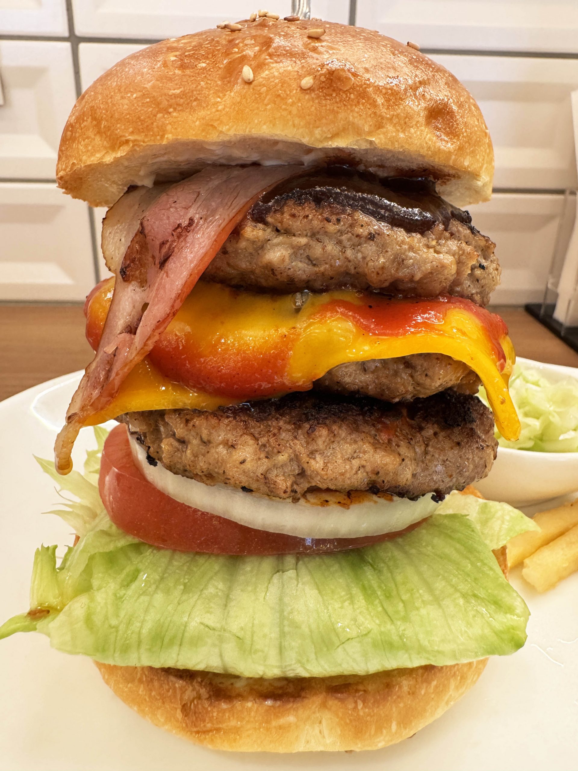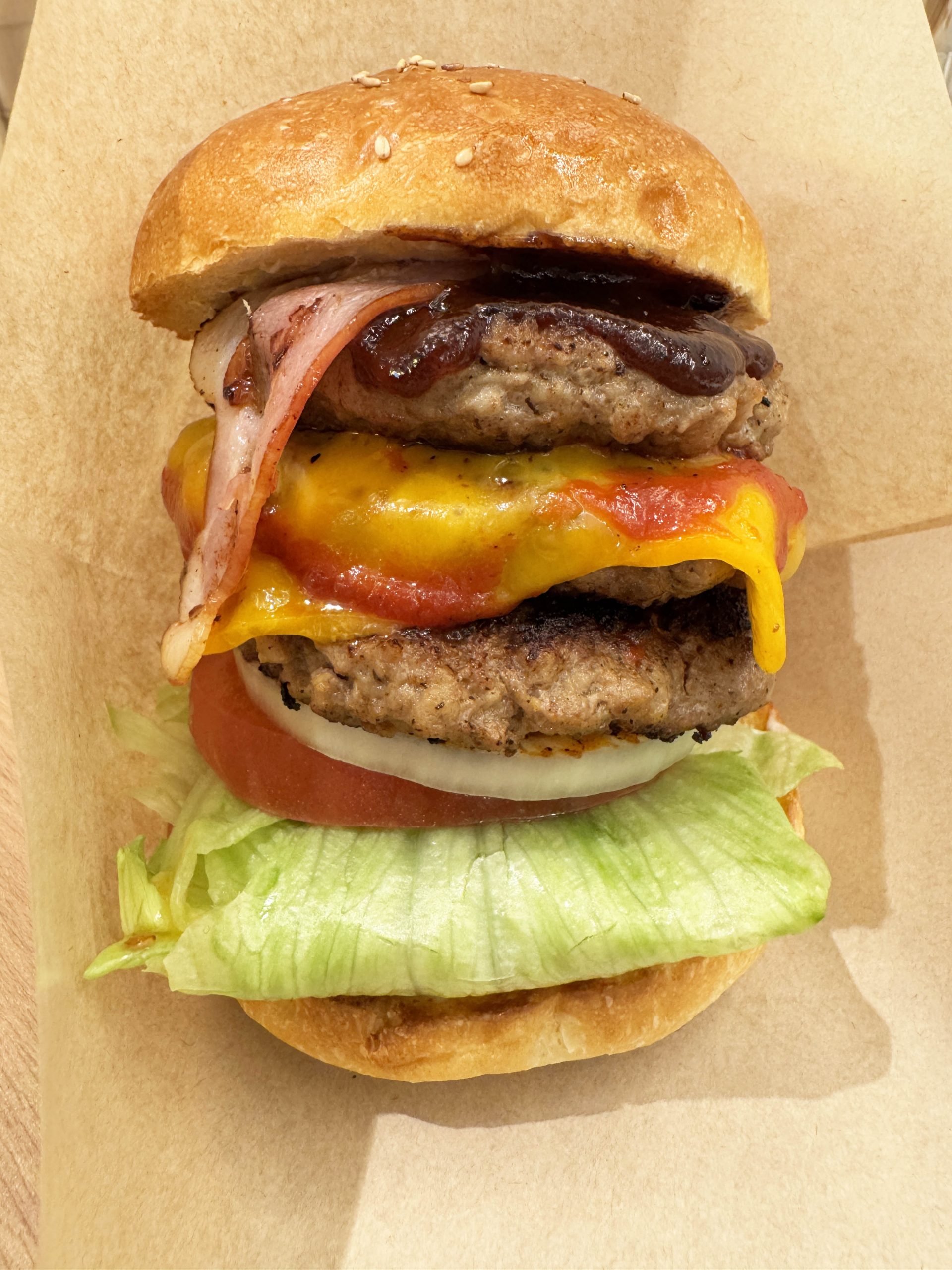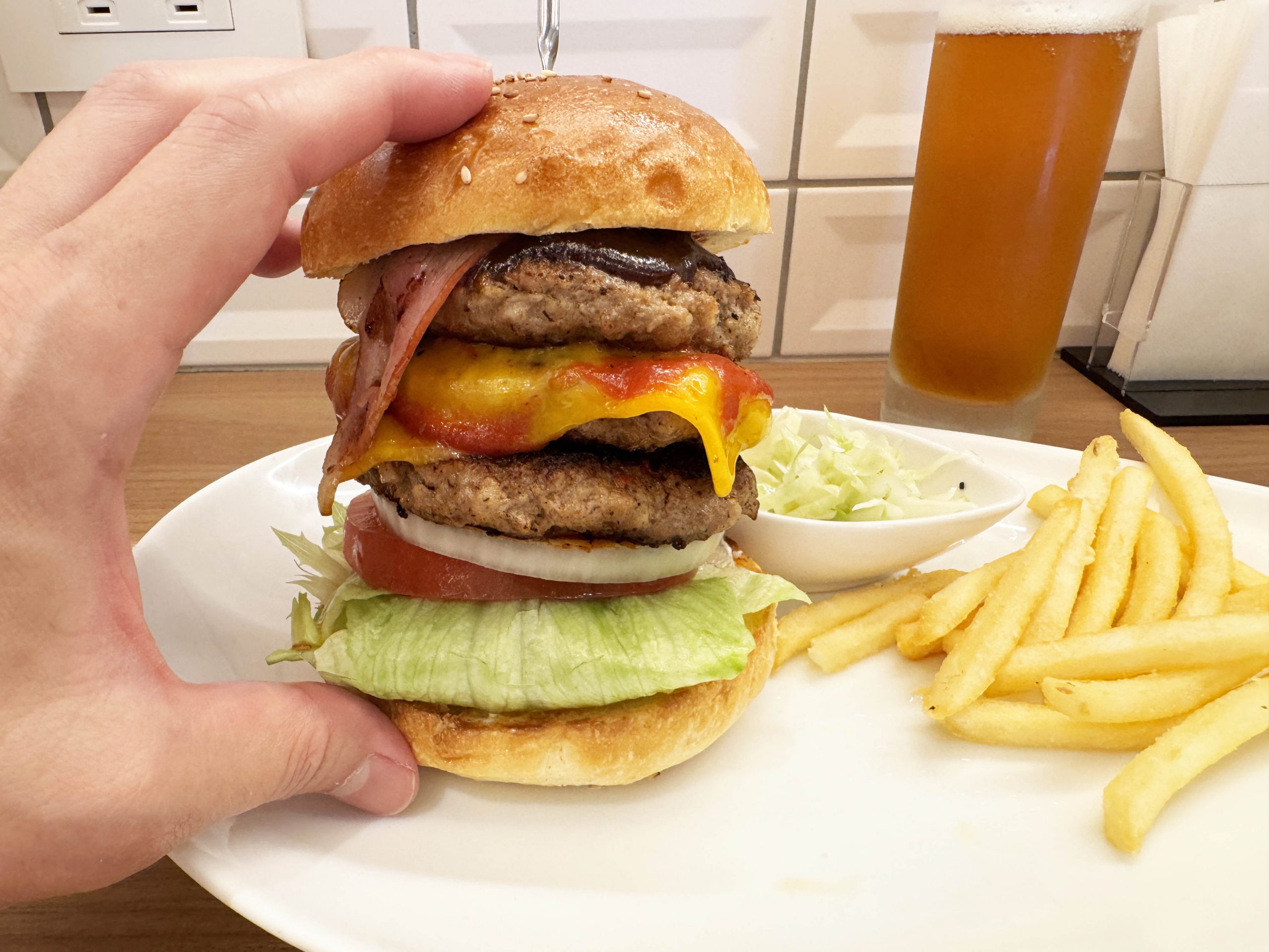 正直、タワーバーガーは、圧縮せずに食べようとすると難しい。さすがに標高が高すぎる! だがしかし!! 今回は、あえて圧縮させずに食べた。どんなもんかなと知りたくなり、そのまま食べた! 食材が集中しないぶん、それぞれのピュアな味がダイレクトに楽しめて良かった!