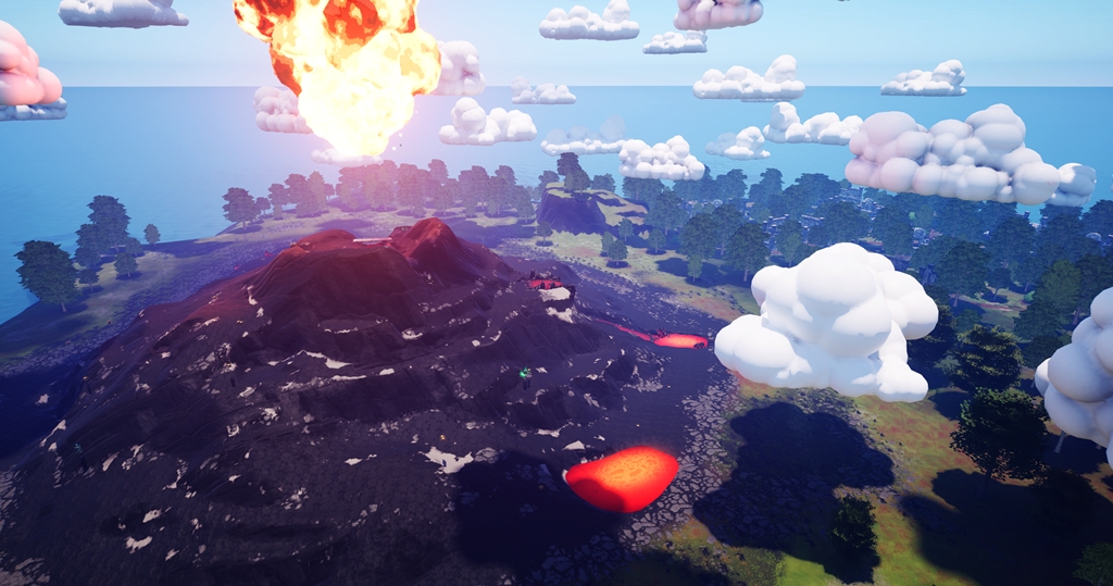 ▲フォートナイトの巨大な火山を中心に広がるバトルフィールド