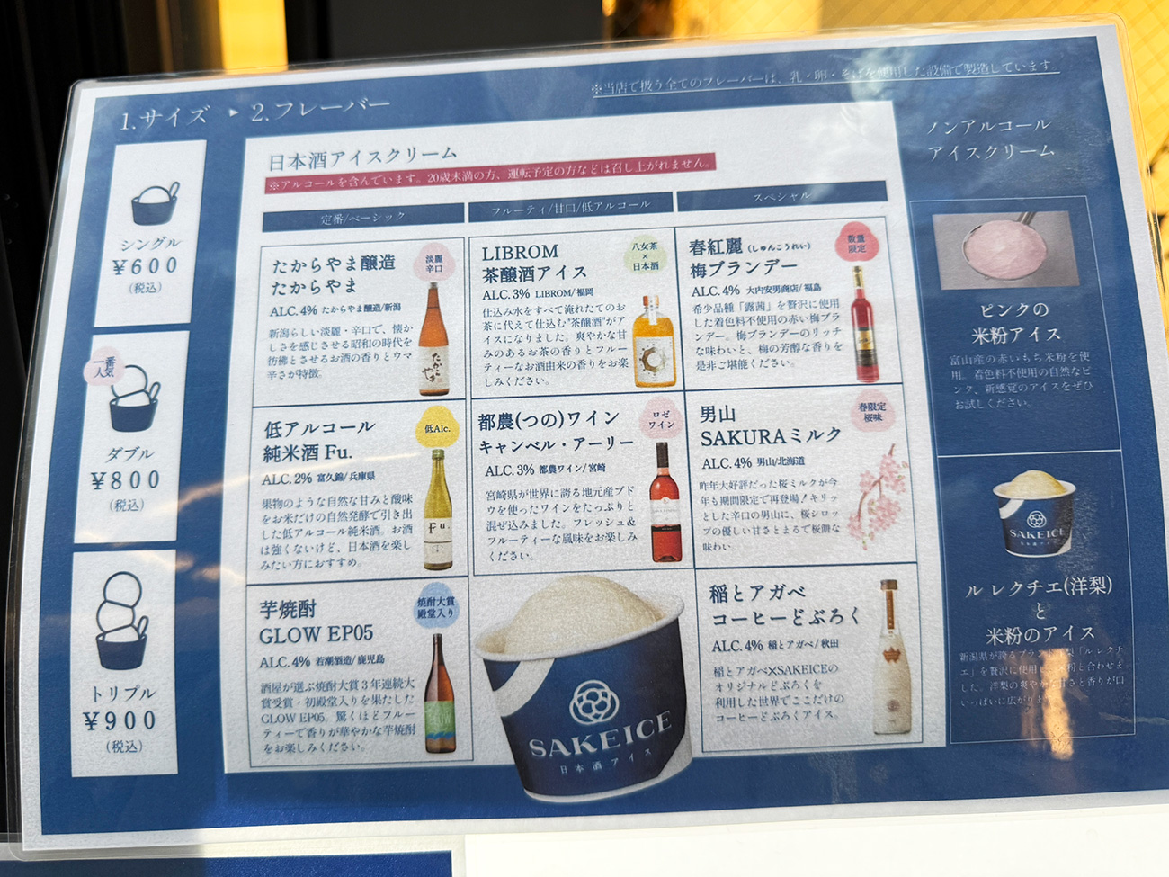 こちらは以前に1号店が東京・浅草にオープンした際にも取材させていただいたのですが、日本中の酒蔵とコラボした商品を次々に開発。アイスが好きな方だけでなく、本格的な日本酒が好きな方にも刺さるラインナップとなっています。