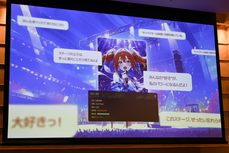 筆者も、発表後のデモ機で実際にキャラクターとの会話を体験。短い返答でもこちらの意図をしっかり汲み取り、自然な流れで会話が続くため、非常に楽しいひとときだった。