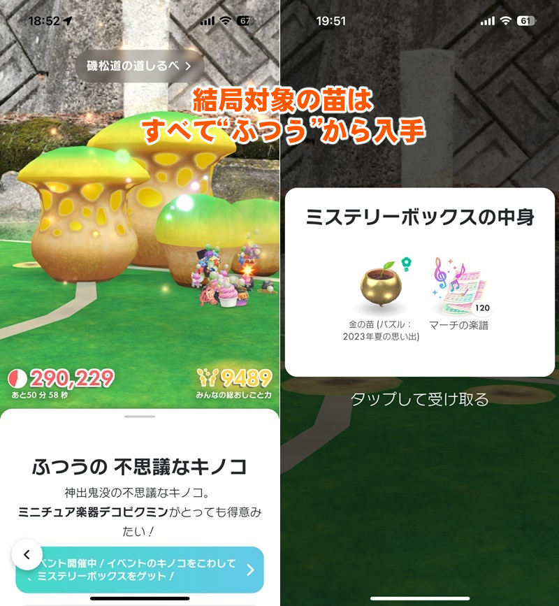 いっぽう、“2023年夏の思い出”はキノコの破壊報酬・ミステリーボックスに委ねられている。