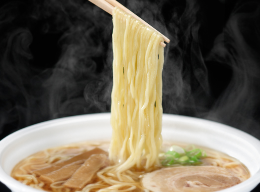 なかでも作り方の最大のポイントは、麺をゆでることです。実はカップラーメンの麺は、乾燥するときの手間・技術面での課題から、お店のように麺をゆでずに麺を蒸してつくられることが一般的なのですが、弊社ではお店と同じように麺を「ゆで」ています。それにより、滑らかさ・モチモチ感・コシが特徴的で”カップラーメンとして”ではなく、”ラーメンとして”おいしい麺をお楽しみいただけます。