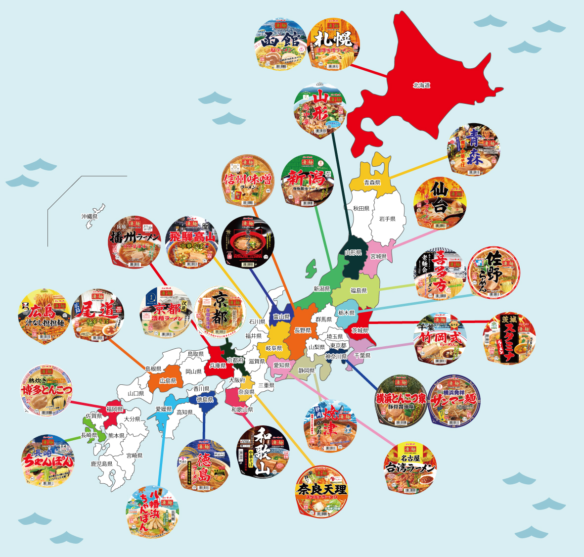有名ラーメン店の店名がパッケージに書かれているカップ麺は多いですが、「函館」「青森」「山形」「新潟」「焼津」といった地名がやたらと目立つカップ麺をスーパーなどで見かけたことはありませんか?