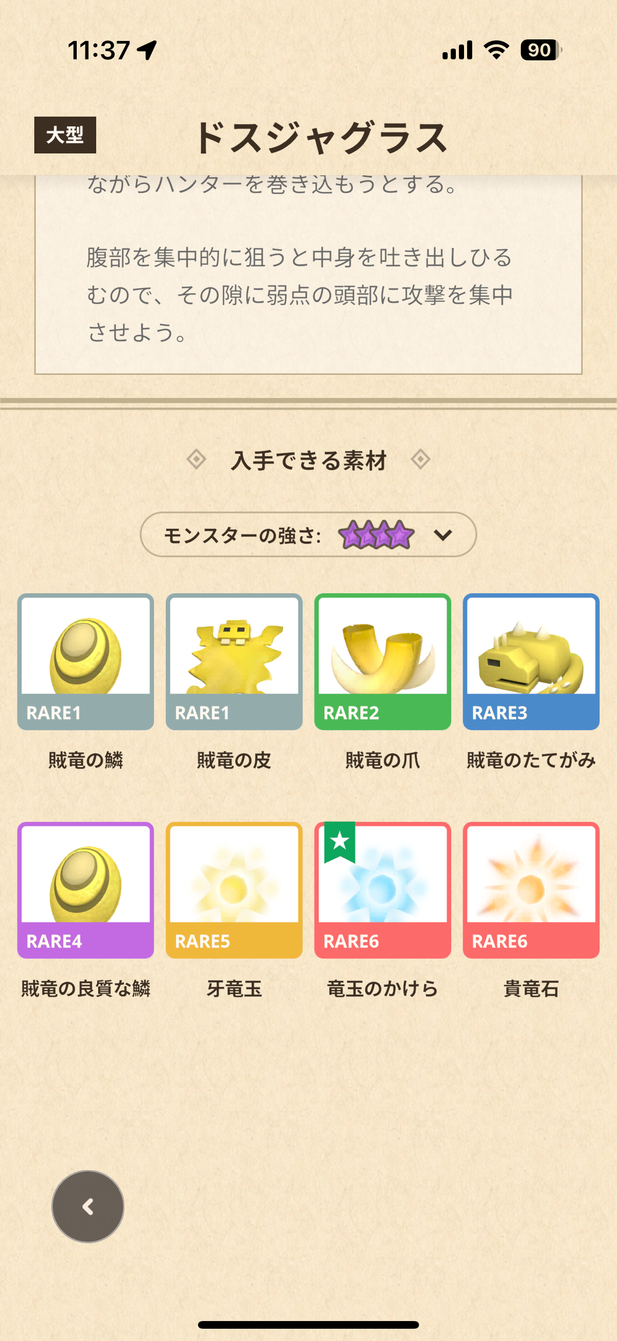 ▲どのモンスターでも★9以上であれば表示されています。「竜玉のかけら」と同じレアリティではあるものの、ドロップ率は更に低い予感。
