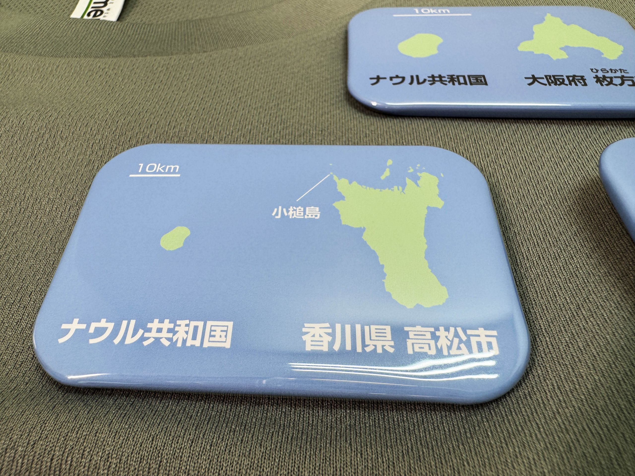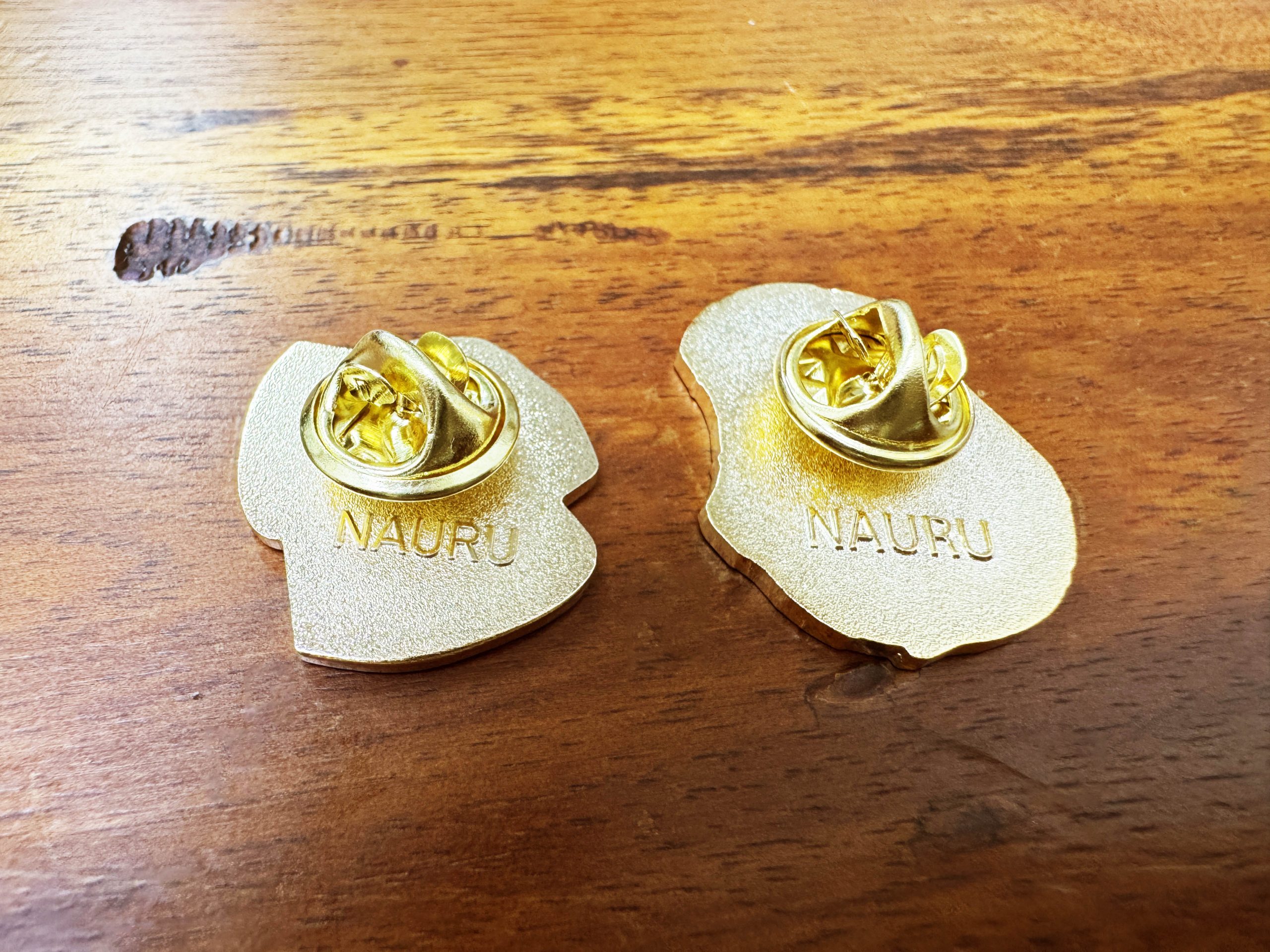 パッと見、何のピンズかわからないかもしれませんが、背面にはしっかり「NAURU」の文字がデザインされているので、これがナウル共和国を表現したピンズであることがわかります。