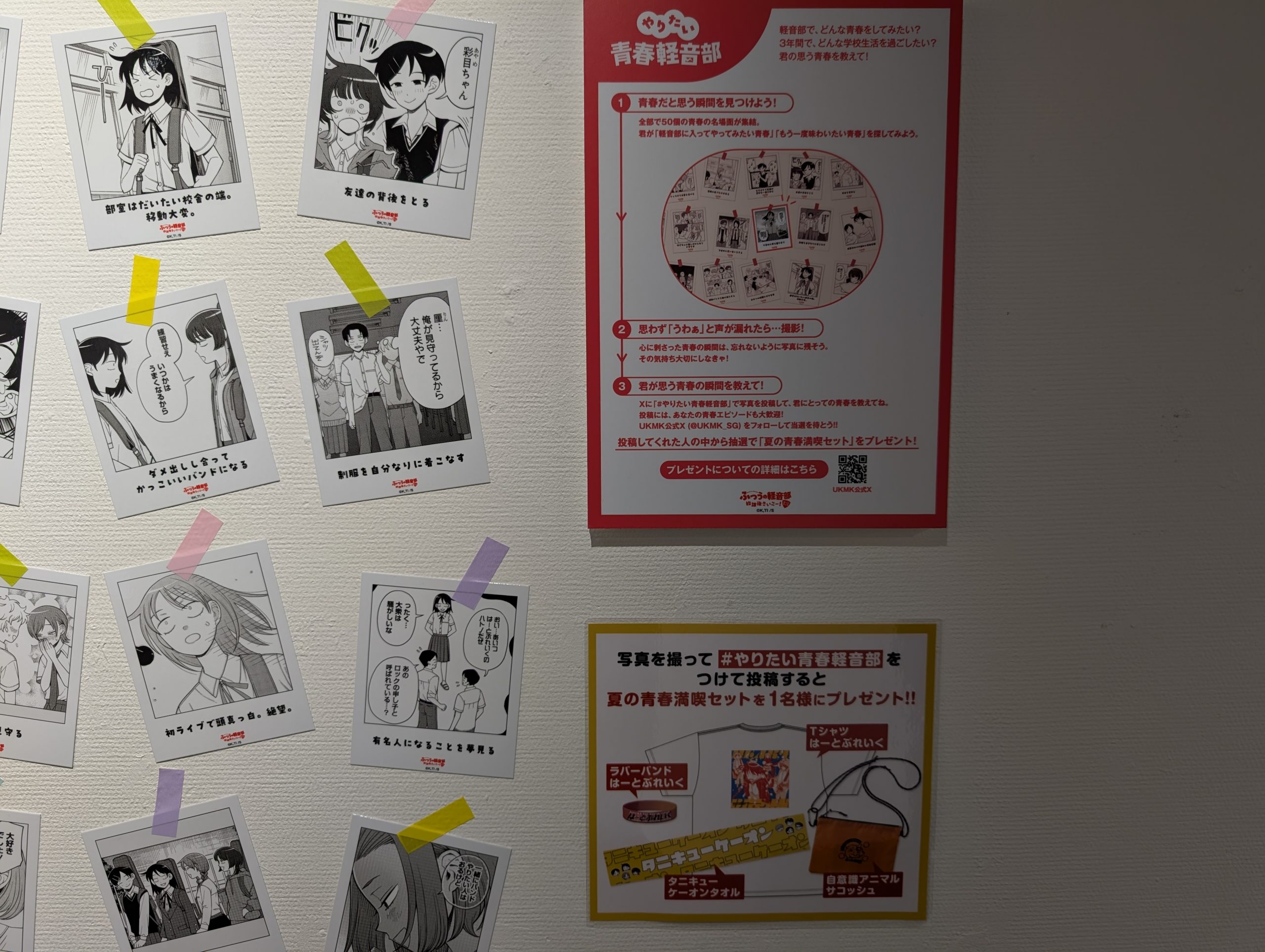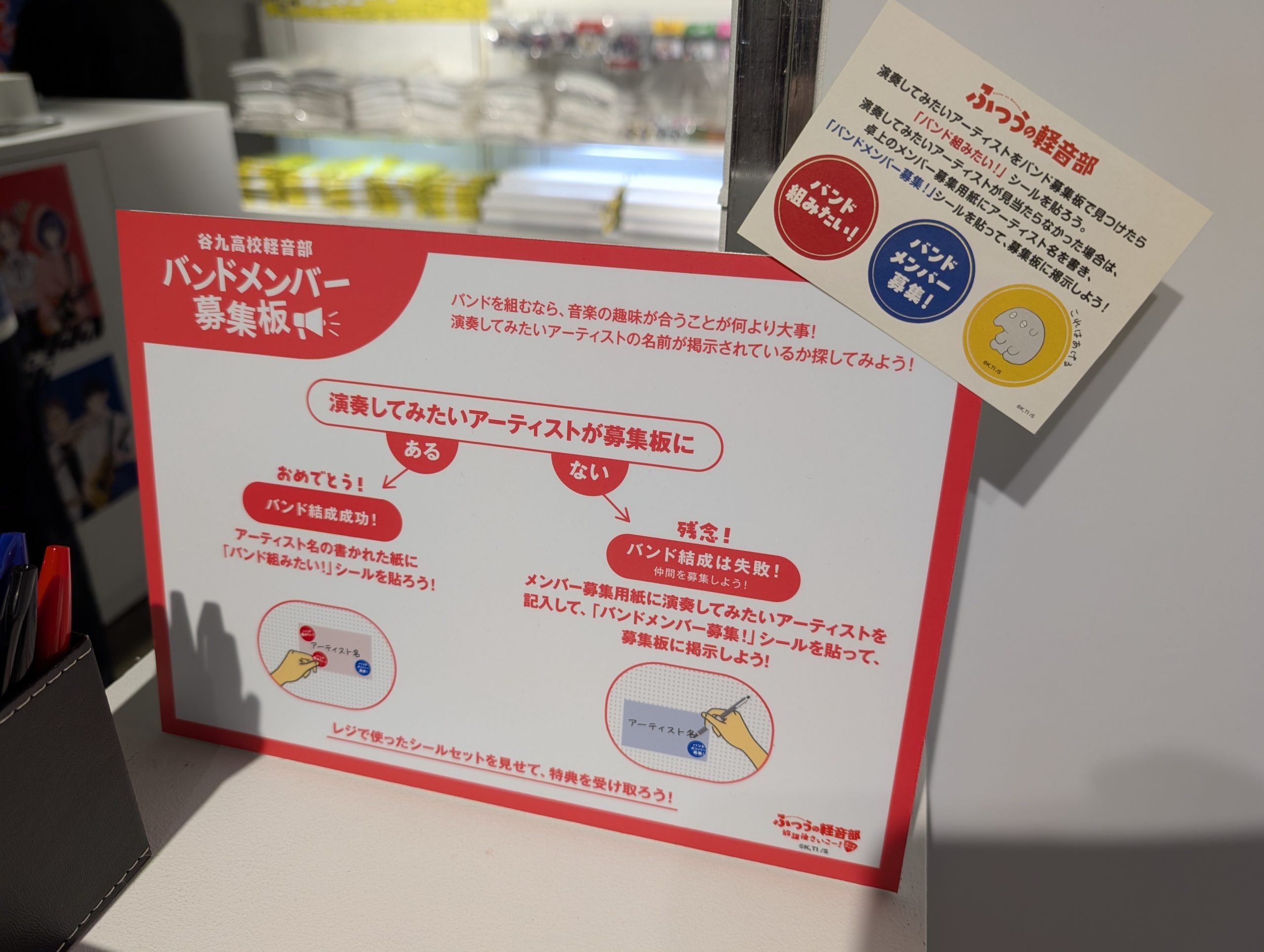同ポップアップは、主人公たちが通う谷九高校の軽音部にあなたも体験入部できるというコンセプトで、入部体験やさまざまなフォトスポットを楽しめるという体験型のもの。そして、このイベントのために作られた、オリジナル原作グッズの販売もあります。