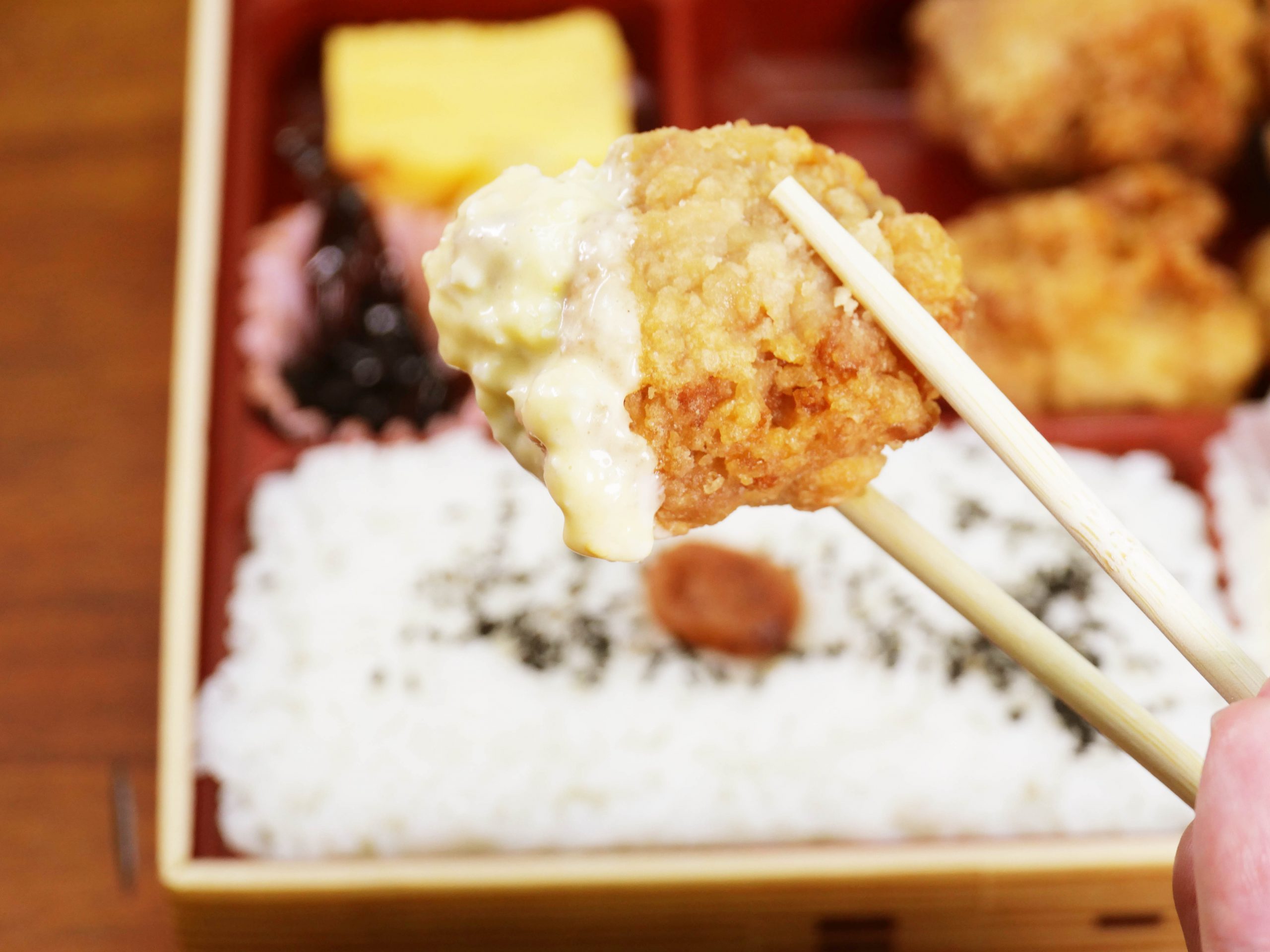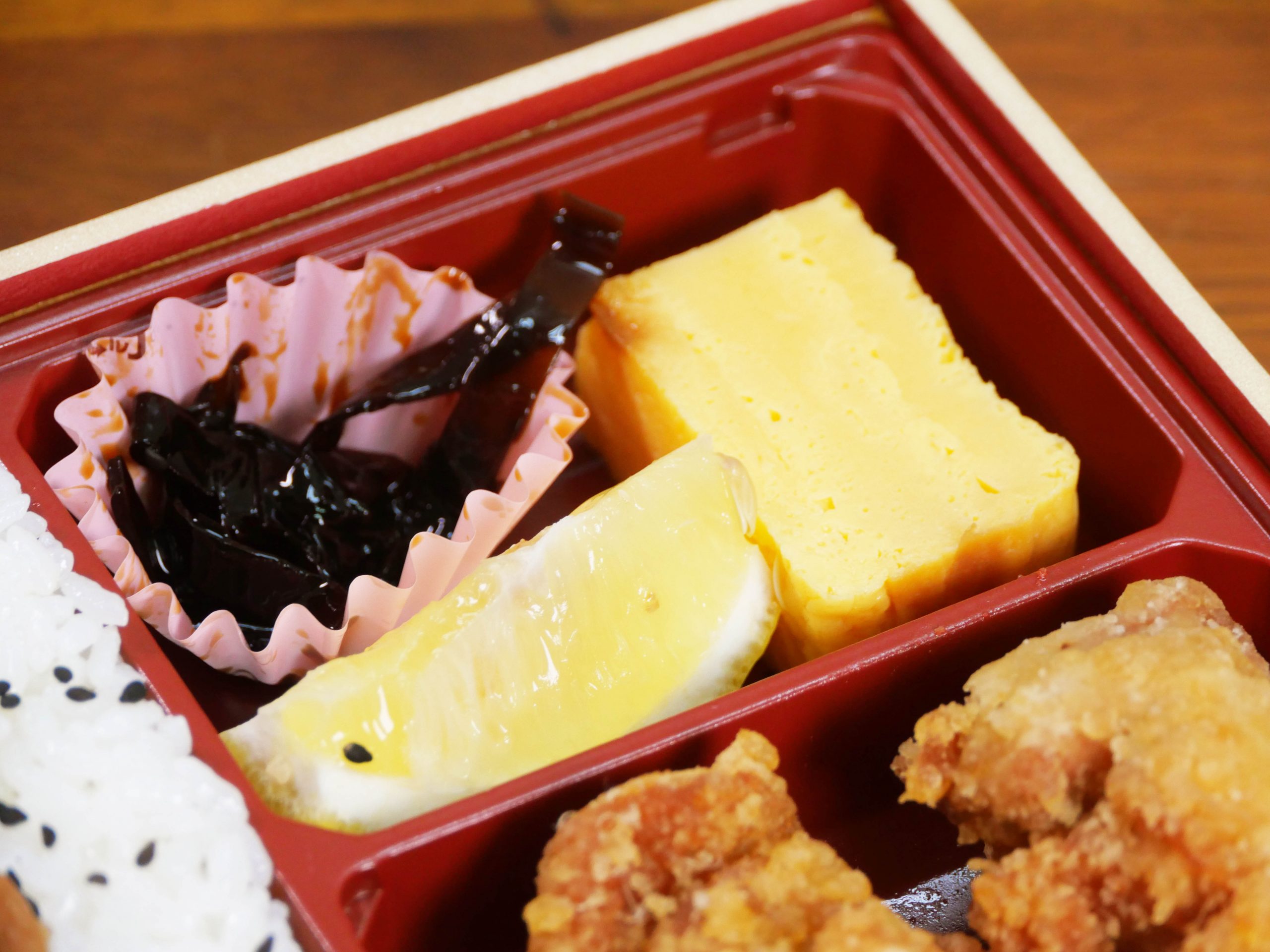 当時「ひと手間かけたからあげ弁当」と題して販売されていた駅弁は、運営がJR東海リテイリング・プラスになったのち「からあげ弁当 相性抜群タルタルソース 味変で美味しさUP」と改名。味の向上をさせつつ、パッケージデザインをリニューアル。レモン、山椒、柚子胡椒が添えられている。