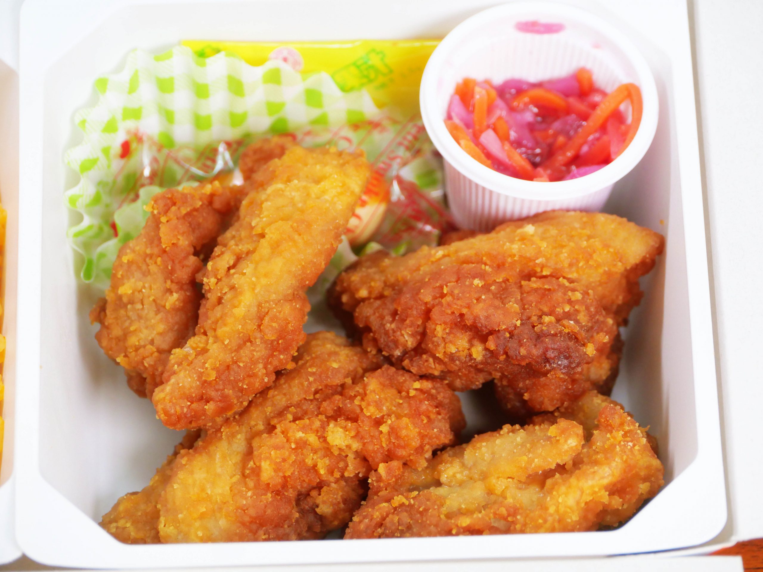 ポップすぎて「駅弁っぽくない」という理由から買わない人もいるかもしれないが……、実にもったいない。かなりウマイ。岸田メル先生は「品川から乗る時の駅弁はチキン弁当で大安定」ともコメントしており、実際に食べれば、その言葉の理由がわかる。
