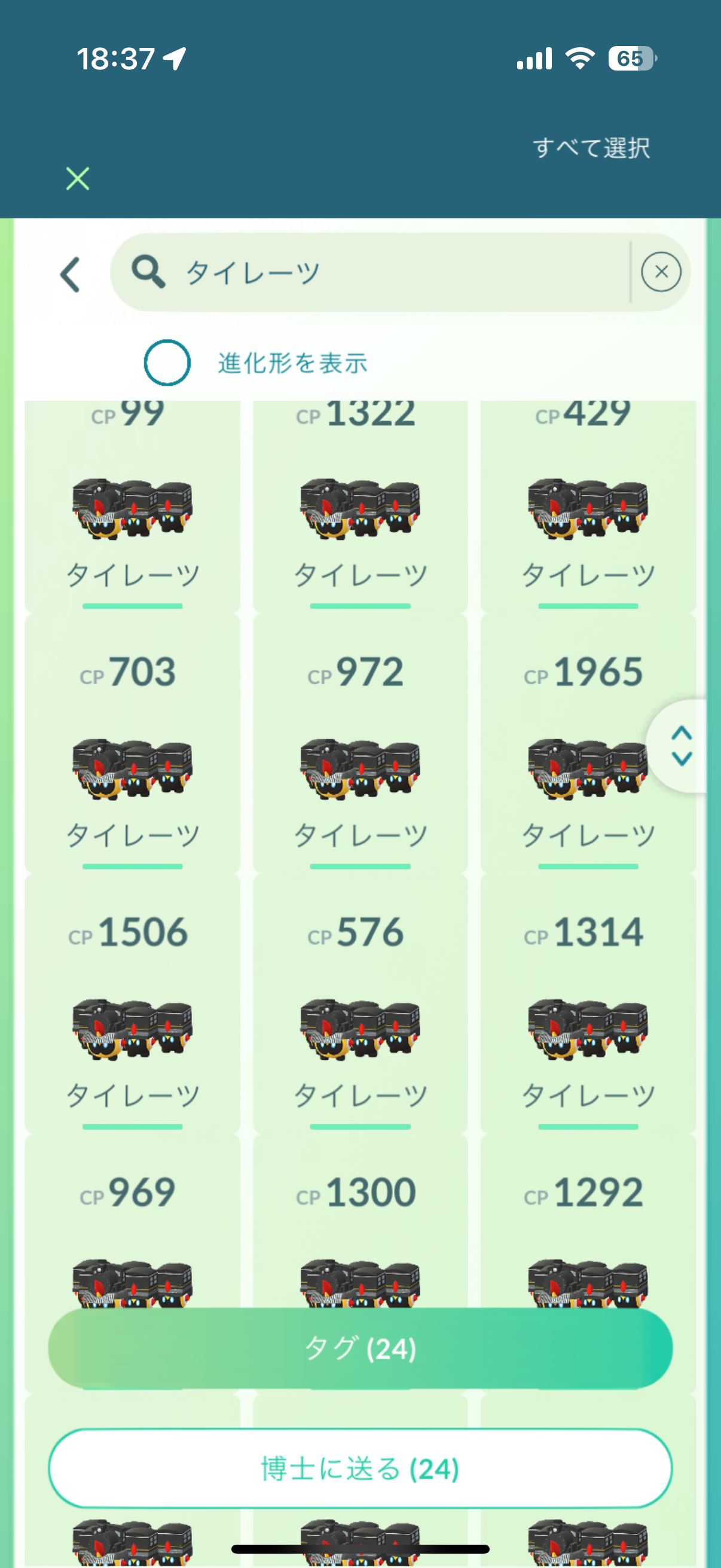 ▲任意の条件で絞り込んだポケモンにまとめてタグをつければ、博士に送るポケモンだけを簡単に抽出可能となるので、あとは全選択で博士に送るのみとなります。